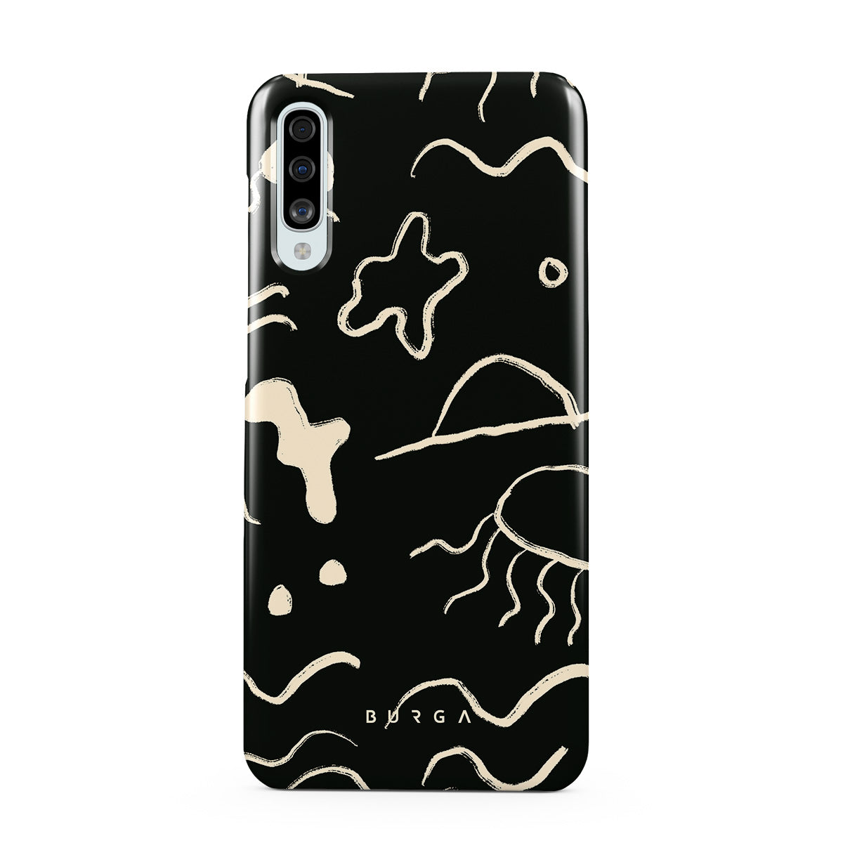 Our Eclipse Samsung Galaxy A50 design reflects the enigmatic beauty of the ocean during a solar eclipse. The dark hues and bright accents represent how the light dances on the water, while the waves and jellyfish capture the serene yet dynamic nature of the ocean.