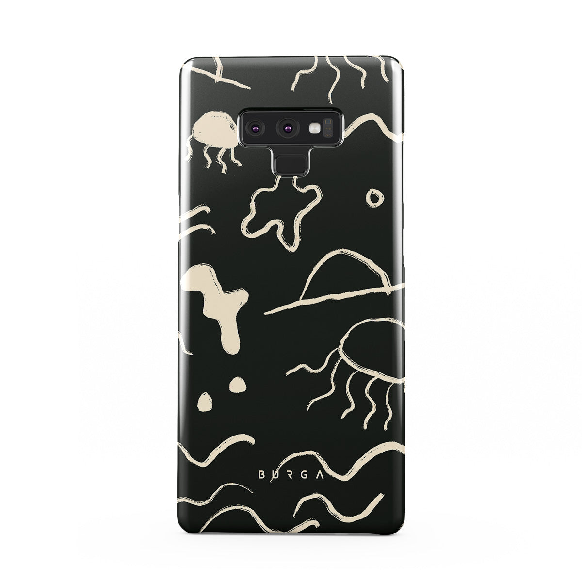Our Eclipse Samsung Galaxy Note 9 design reflects the enigmatic beauty of the ocean during a solar eclipse. The dark hues and bright accents represent how the light dances on the water, while the waves and jellyfish capture the serene yet dynamic nature of the ocean.