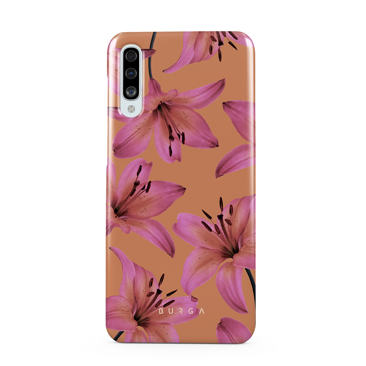 A design inspired by the effortless bloom of lilies, reflecting the beauty of embracing life's spontaneous moments. Like lilies that thrive untamed, this case reminds us to flourish in the face of change. Embodying the magic of life's unpredictable tapestry with our Eden Samsung Galaxy A50 phone case.