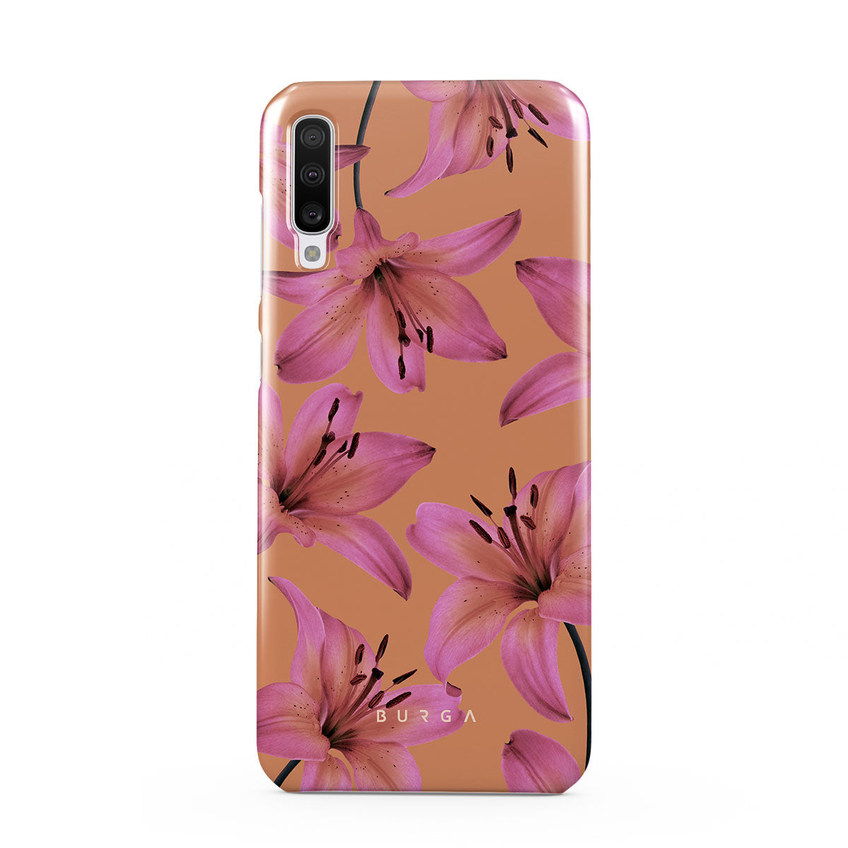 A design inspired by the effortless bloom of lilies, reflecting the beauty of embracing life's spontaneous moments. Like lilies that thrive untamed, this case reminds us to flourish in the face of change. Embodying the magic of life's unpredictable tapestry with our Eden Samsung Galaxy A70 phone case.