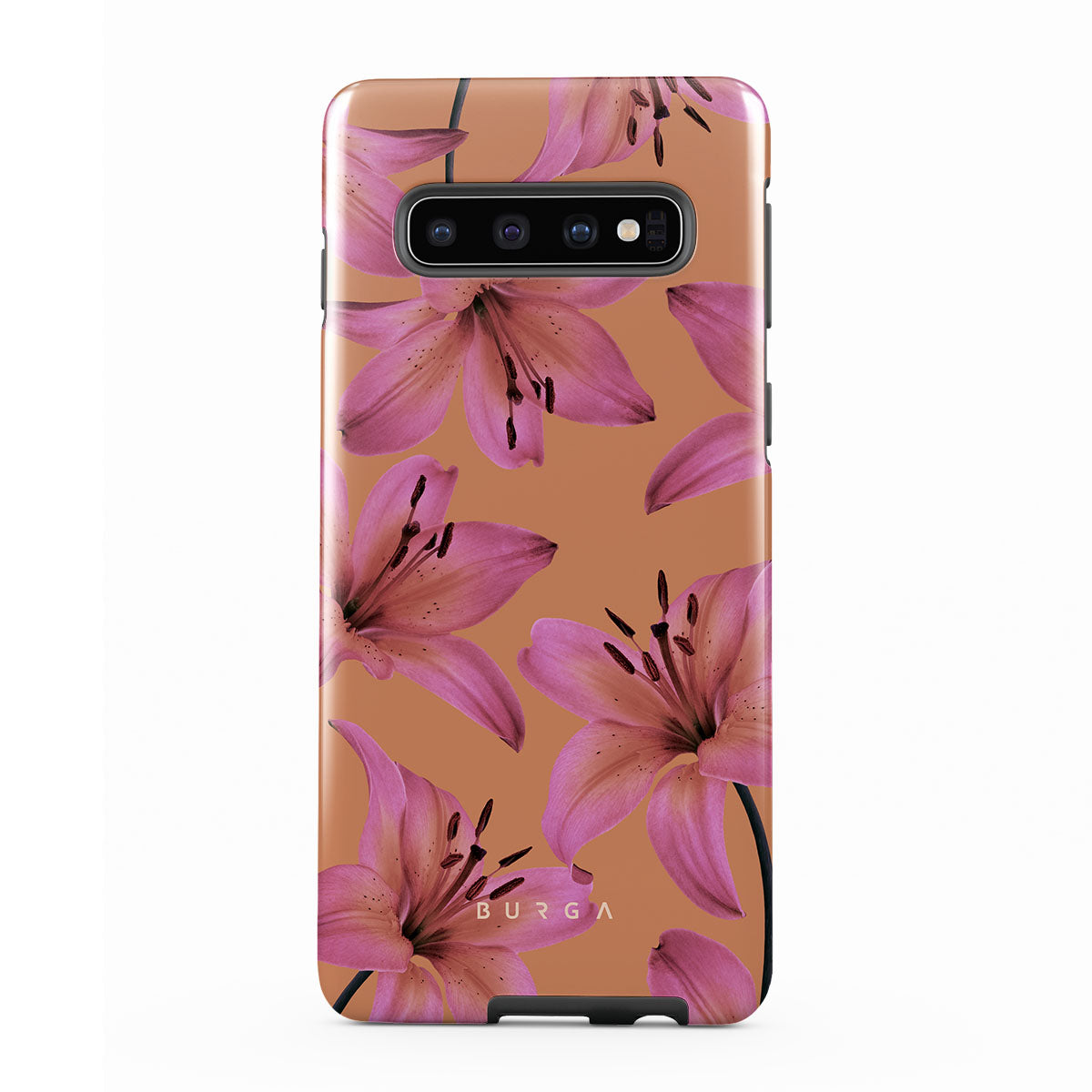 A design inspired by the effortless bloom of lilies, reflecting the beauty of embracing life's spontaneous moments. Like lilies that thrive untamed, this case reminds us to flourish in the face of change. Embodying the magic of life's unpredictable tapestry with our Eden Samsung Galaxy S10 4G phone case.