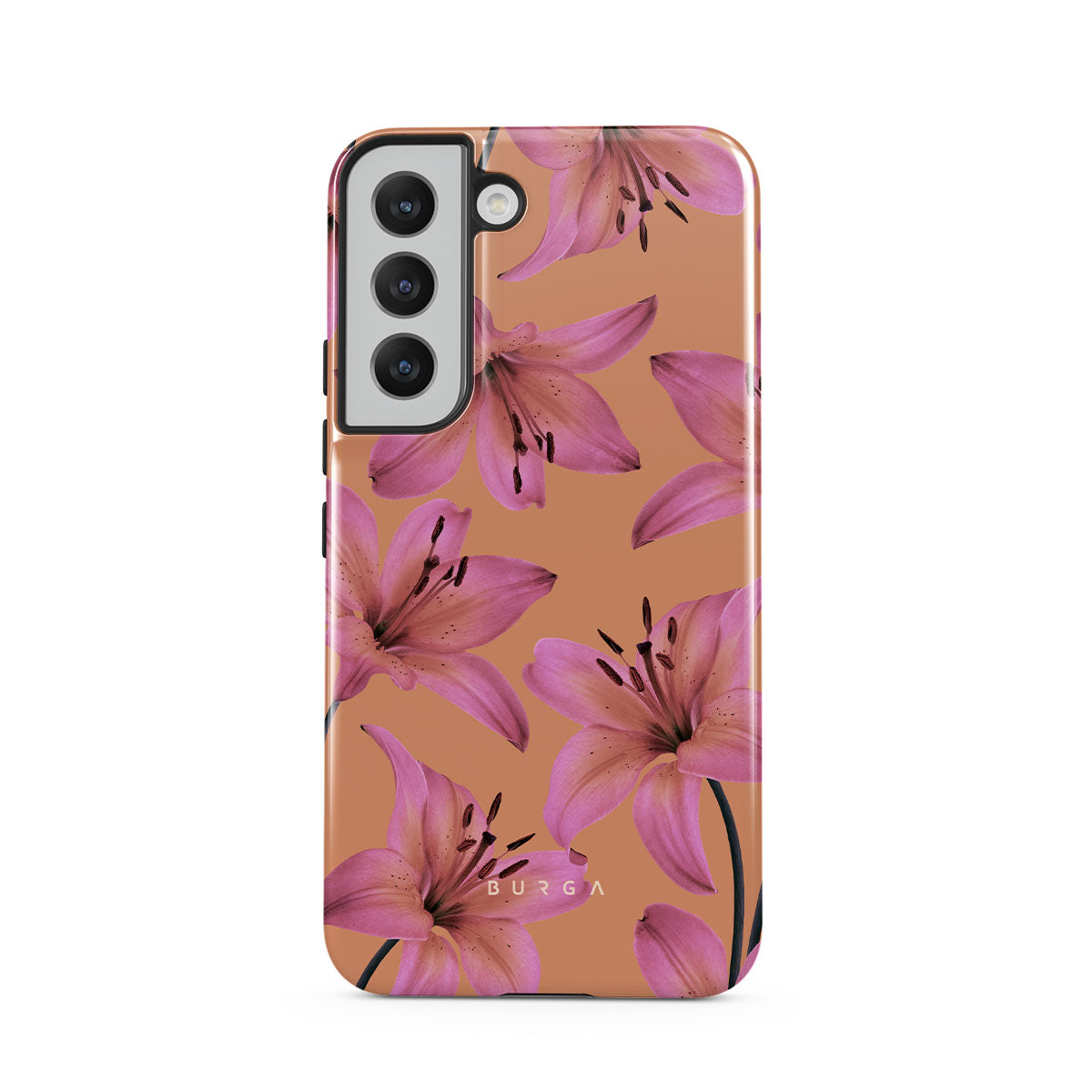 A design inspired by the effortless bloom of lilies, reflecting the beauty of embracing life's spontaneous moments. Like lilies that thrive untamed, this case reminds us to flourish in the face of change. Embodying the magic of life's unpredictable tapestry with our Eden Samsung Galaxy S22 phone case.