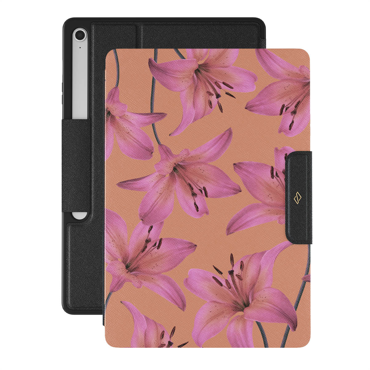 A design inspired by the effortless bloom of lilies, reflecting the beauty of embracing life's spontaneous moments. Like lilies that thrive untamed, this case reminds us to flourish in the face of change. Embodying the magic of life's unpredictable tapestry with our Eden Samsung Galaxy Tab S10+ FE folio case.
