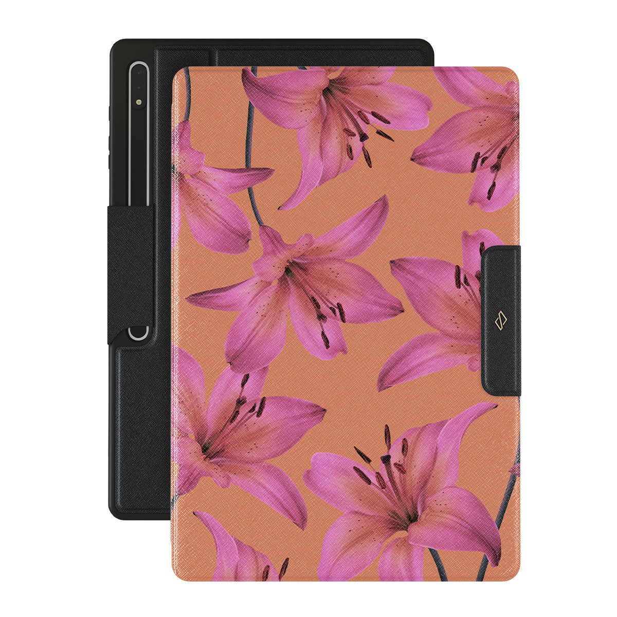 A design inspired by the effortless bloom of lilies, reflecting the beauty of embracing life's spontaneous moments. Like lilies that thrive untamed, this case reminds us to flourish in the face of change. Embodying the magic of life's unpredictable tapestry with our Eden Samsung Galaxy Tab S8 Ultra folio case.