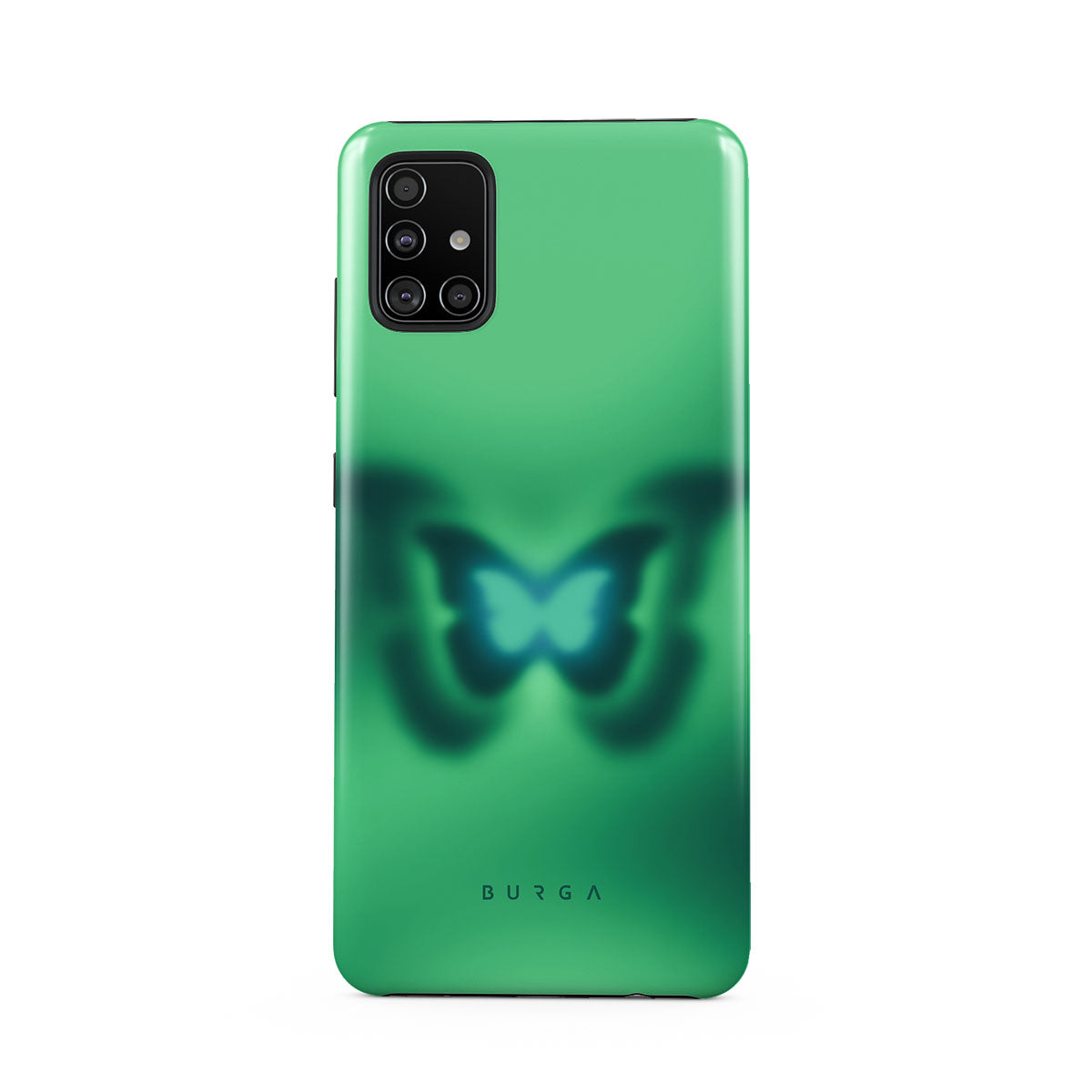 Immerse yourself in the captivating essence of Energy. This radiant Samsung Galaxy A51 4G phone case design, featuring a butterfly against a striking green background, symbolizes transformation and the excitement of new adventures. Its dynamic allure complements every OOTD.