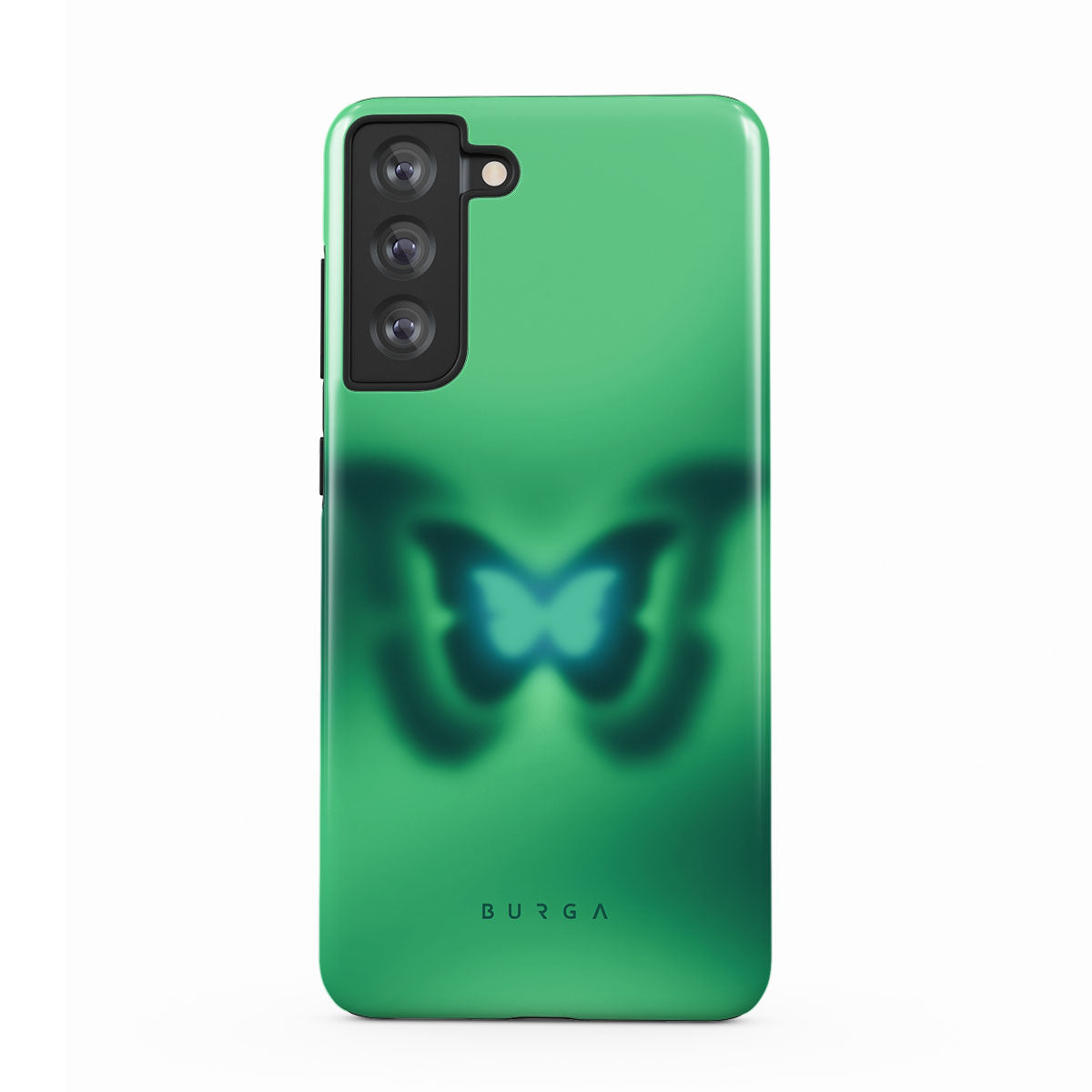 Immerse yourself in the captivating essence of Energy. This radiant Samsung Galaxy S21 FE phone case design, featuring a butterfly against a striking green background, symbolizes transformation and the excitement of new adventures. Its dynamic allure complements every OOTD.