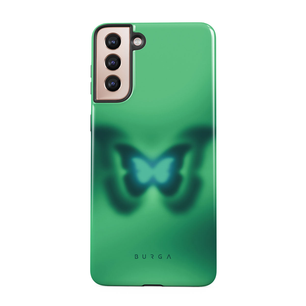 Immerse yourself in the captivating essence of Energy. This radiant Samsung Galaxy S21 Plus phone case design, featuring a butterfly against a striking green background, symbolizes transformation and the excitement of new adventures. Its dynamic allure complements every OOTD.