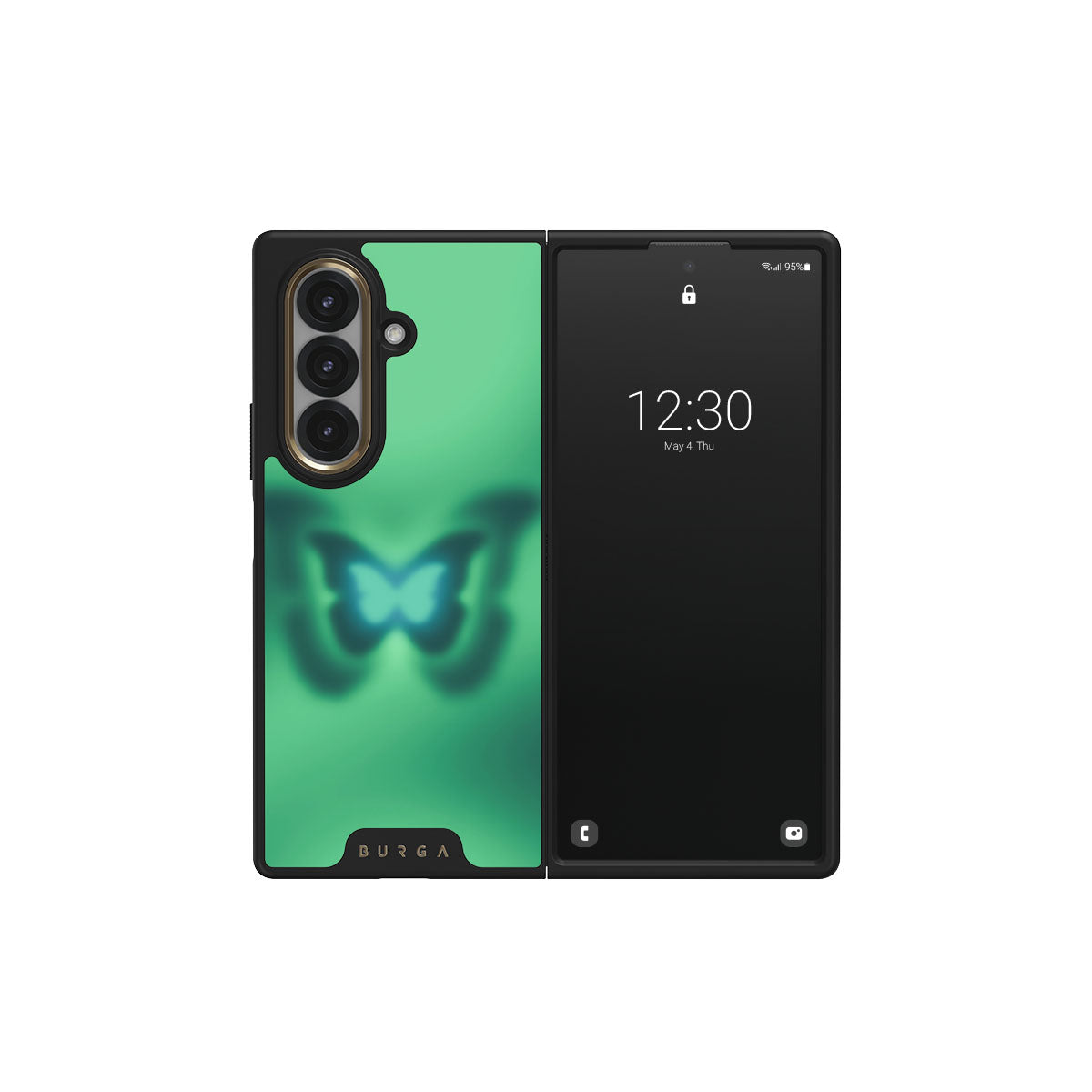 Immerse yourself in the captivating essence of Energy. This radiant Samsung Galaxy Z Fold 7 phone case design, featuring a butterfly against a striking green background, symbolizes transformation and the excitement of new adventures. Its dynamic allure complements every OOTD.