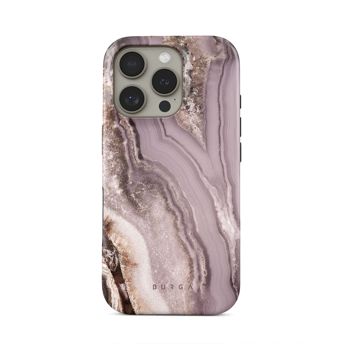 Make a fashion statement with iPhone 16 Pro phone case that reminds of a geode in the softest mauve shade. A phone case that is both pretty and protective is a best friend of a fashion lover.