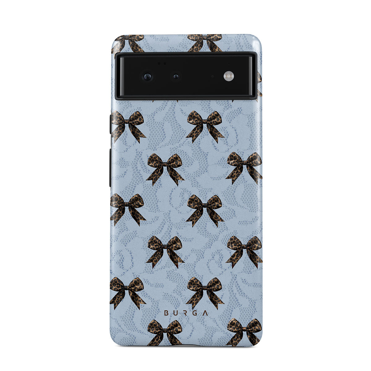 For those who command attention with subtle elegance, our Fashionista Google Pixel 6 Pro phone case design is your go-to. A soft blue background, accented by dark grey bows and subtle lace patterns, exudes polished, effortless style. It's quiet confidence with a hint of charm.