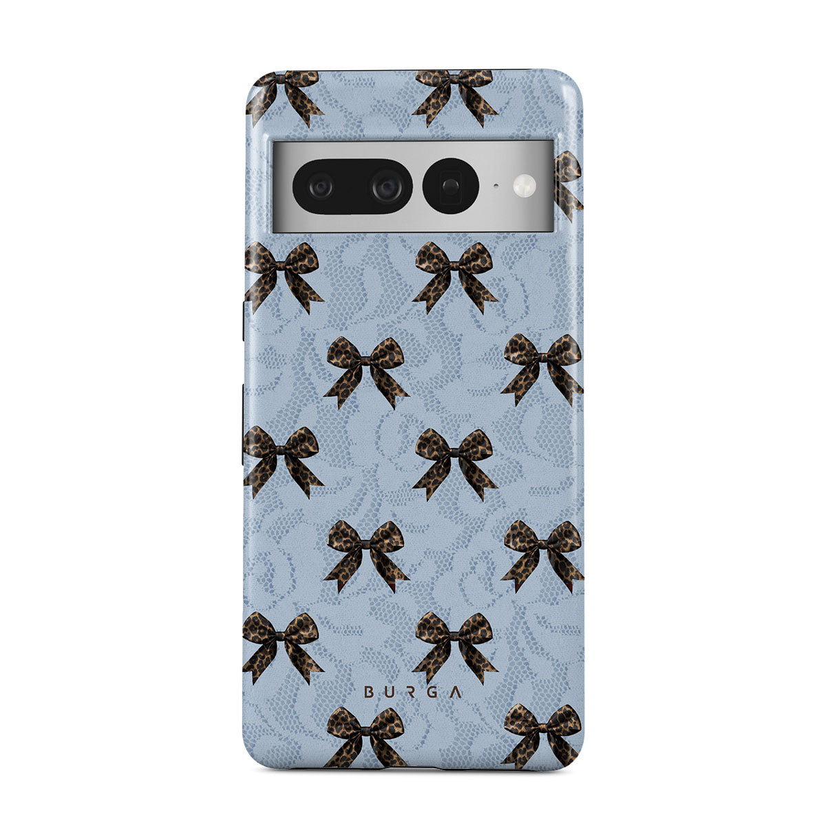 For those who command attention with subtle elegance, our Fashionista Google Pixel 7 Pro phone case design is your go-to. A soft blue background, accented by dark grey bows and subtle lace patterns, exudes polished, effortless style. It's quiet confidence with a hint of charm.