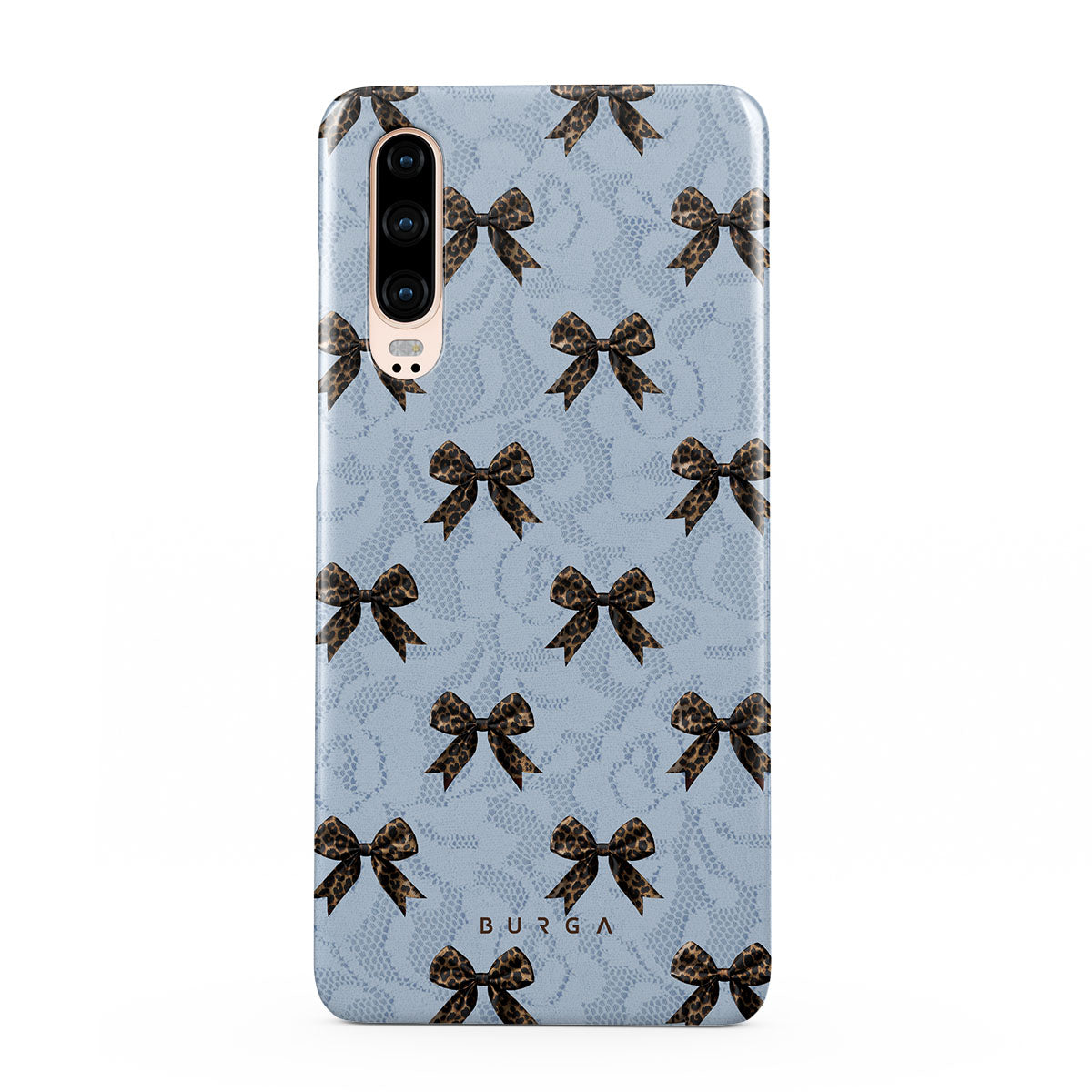 For those who command attention with subtle elegance, our Fashionista Huawei P30 phone case design is your go-to. A soft blue background, accented by dark grey bows and subtle lace patterns, exudes polished, effortless style. It's quiet confidence with a hint of charm.