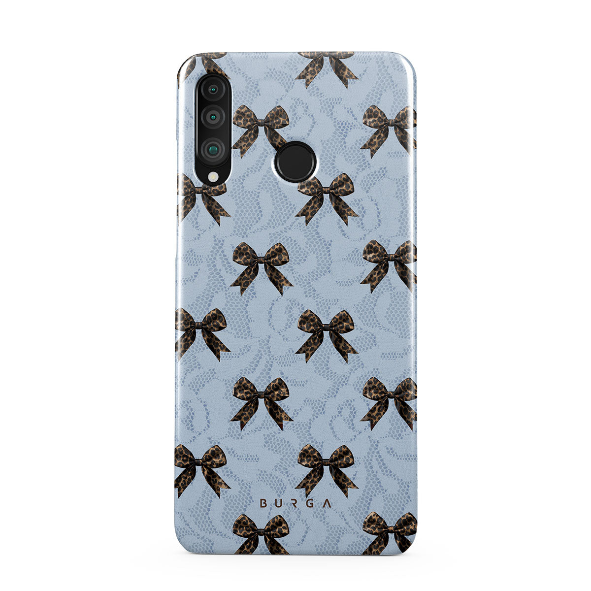 For those who command attention with subtle elegance, our Fashionista Huawei P30 Lite phone case design is your go-to. A soft blue background, accented by dark grey bows and subtle lace patterns, exudes polished, effortless style. It's quiet confidence with a hint of charm.