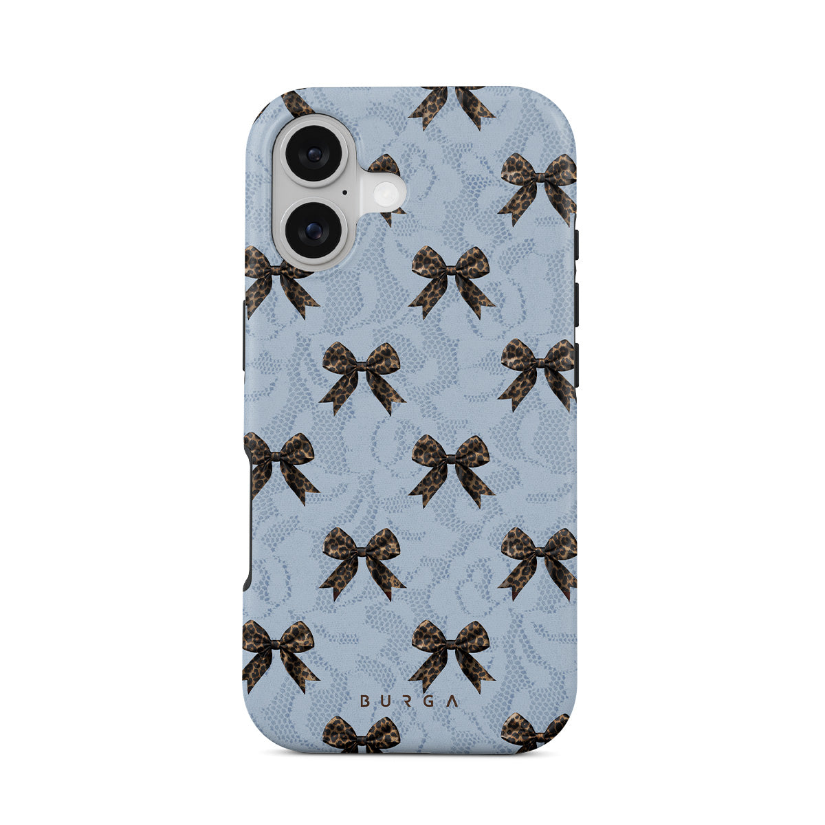 For those who command attention with subtle elegance, our Fashionista iPhone 17 phone case design is your go-to. A soft blue background, accented by dark grey bows and subtle lace patterns, exudes polished, effortless style. It's quiet confidence with a hint of charm.