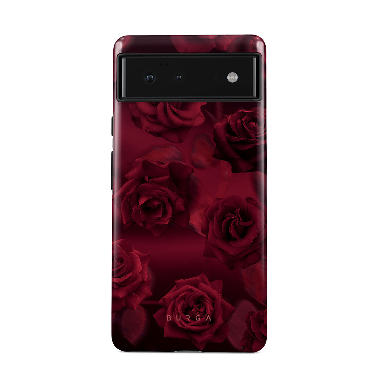 Dive into our intriguing Femme Fatale Google Pixel 6a phone case design. These deep red roses aren't just flowers—they're silent confessions of candlelit romance and moments caught in stolen glances. Crafted for those who captivate at every turn.