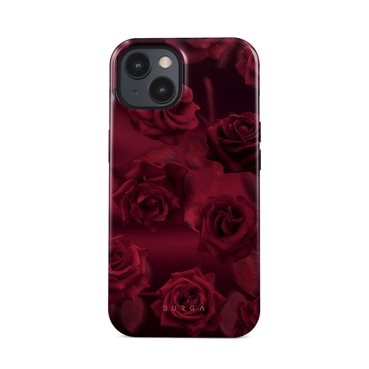 Dive into our intriguing Femme Fatale iPhone 15 phone case design. These deep red roses aren't just flowers—they're silent confessions of candlelit romance and moments caught in stolen glances. Crafted for those who captivate at every turn.