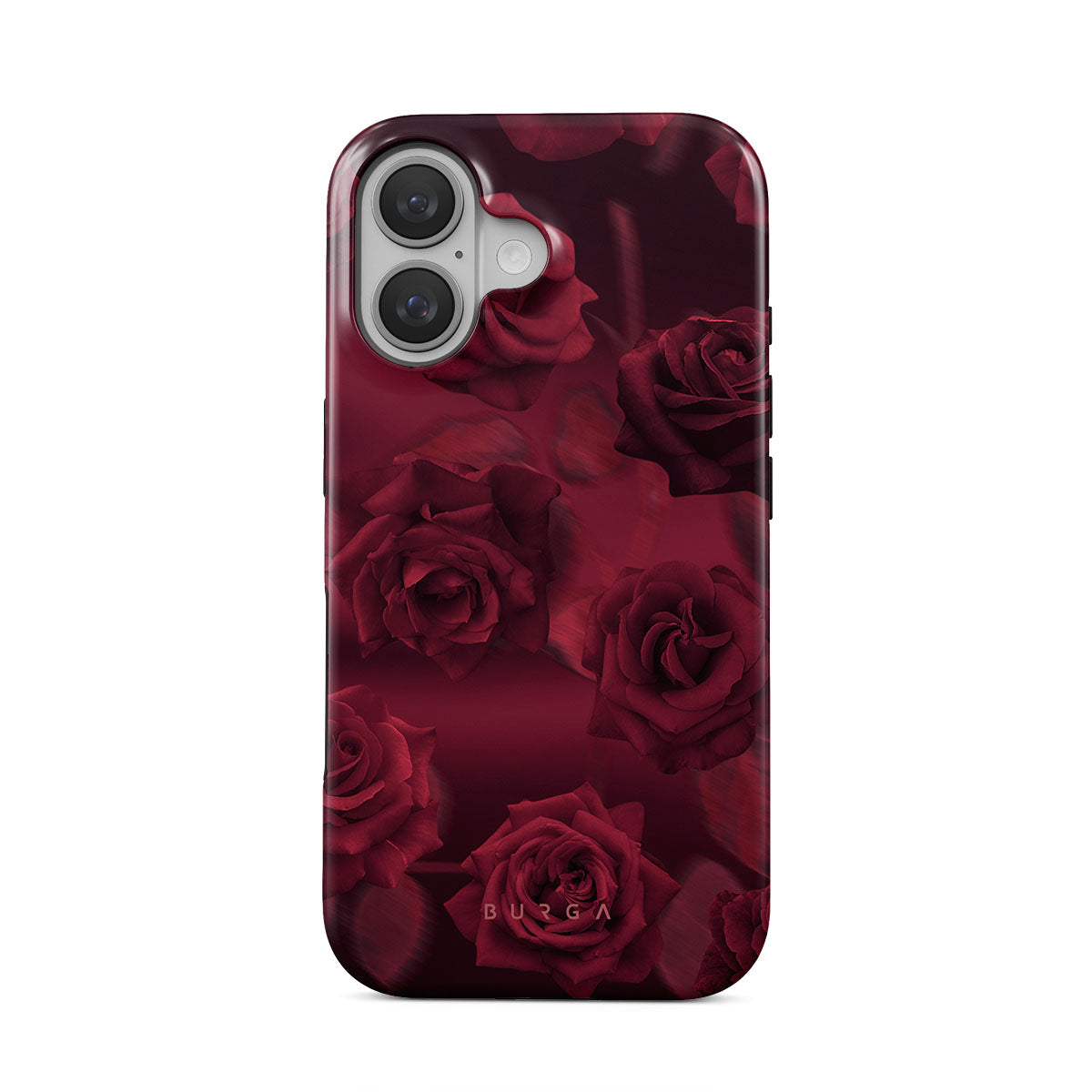 Dive into our intriguing Femme Fatale iPhone 16 Plus phone case design. These deep red roses aren't just flowers—they're silent confessions of candlelit romance and moments caught in stolen glances. Crafted for those who captivate at every turn.