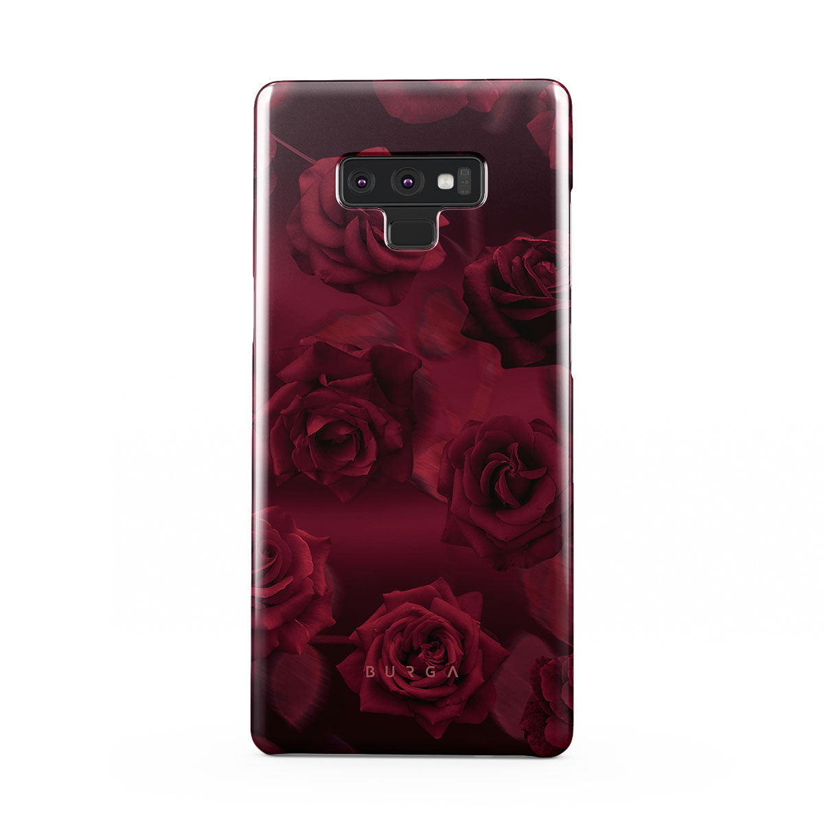 Dive into our intriguing Femme Fatale Samsung Galaxy Note 9 phone case design. These deep red roses aren't just flowers—they're silent confessions of candlelit romance and moments caught in stolen glances. Crafted for those who captivate at every turn.