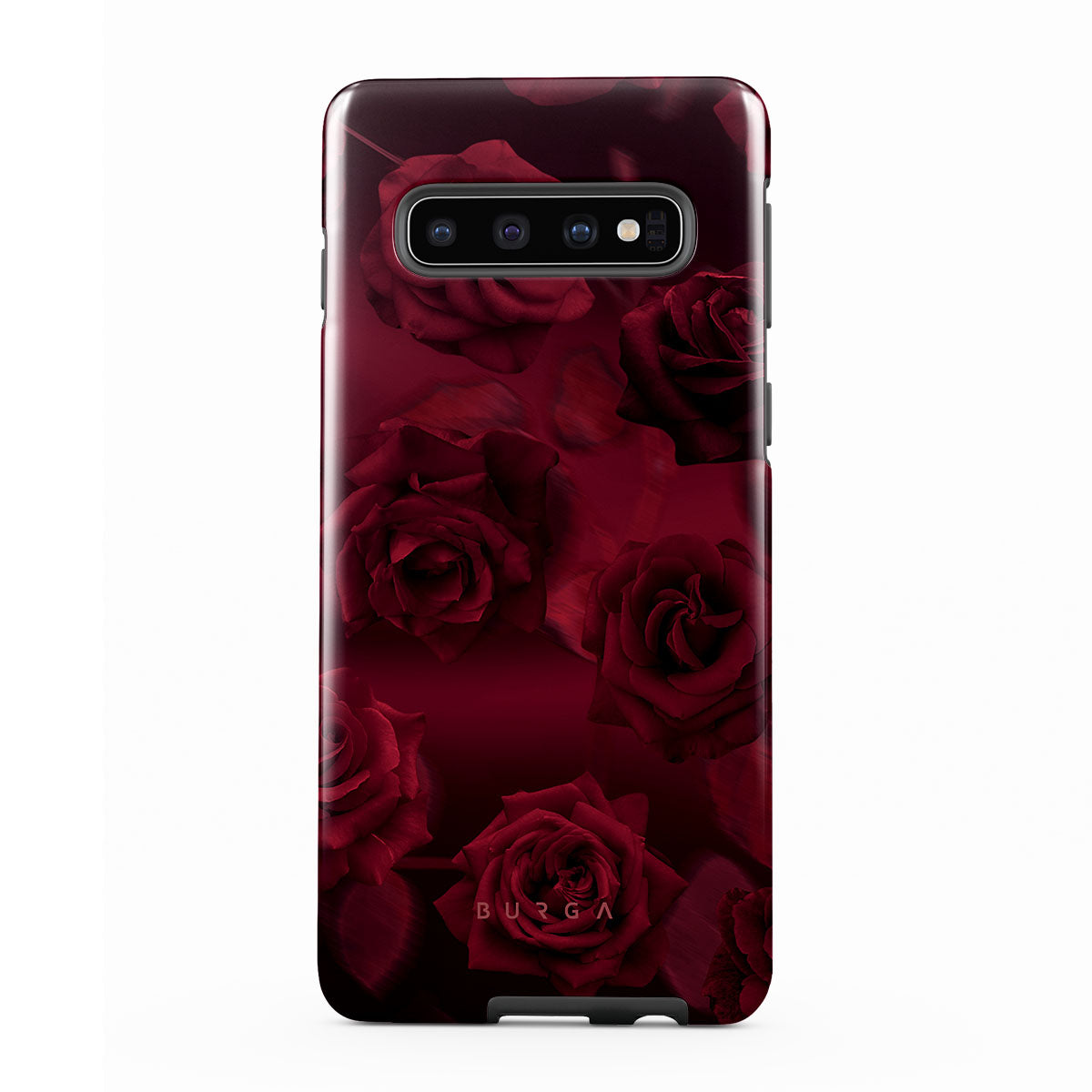 Dive into our intriguing Femme Fatale Samsung Galaxy S10 4G phone case design. These deep red roses aren't just flowers—they're silent confessions of candlelit romance and moments caught in stolen glances. Crafted for those who captivate at every turn.