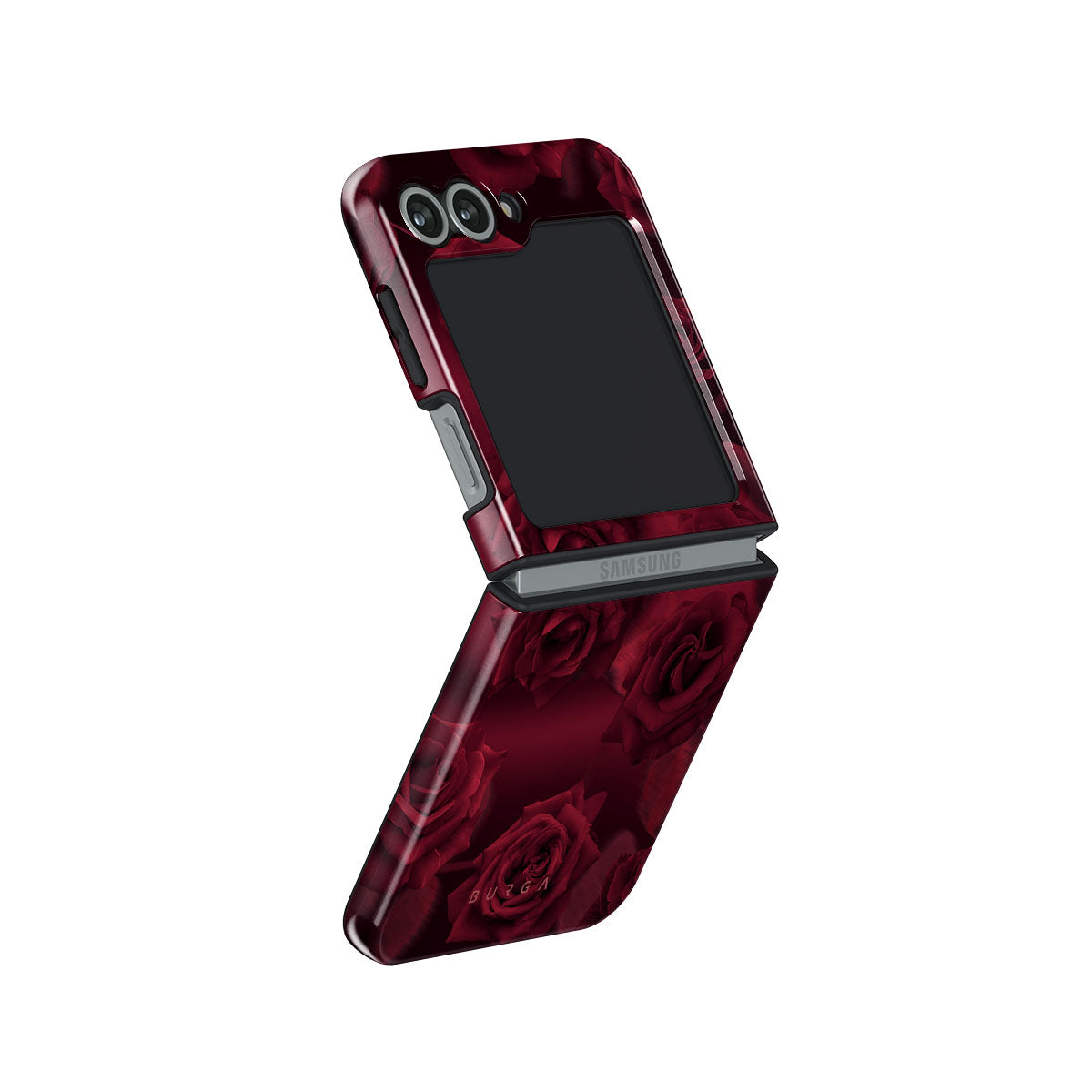 Dive into our intriguing Femme Fatale Samsung Galaxy Z Flip 6 phone case design. These deep red roses aren't just flowers—they're silent confessions of candlelit romance and moments caught in stolen glances. Crafted for those who captivate at every turn.