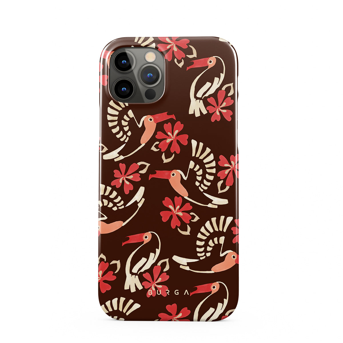 A jungle rave. Parrots, florals, bursts of red and cream—like someone threw a party in the rainforest and forgot to send you the invite. This iPhone 12 Pro Max phone case design is your RSVP.
