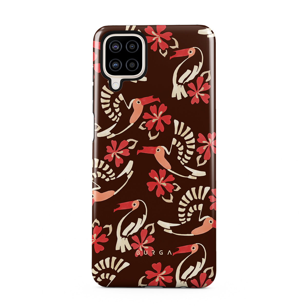 A jungle rave. Parrots, florals, bursts of red and cream—like someone threw a party in the rainforest and forgot to send you the invite. This Samsung Galaxy A12 4G phone case design is your RSVP.