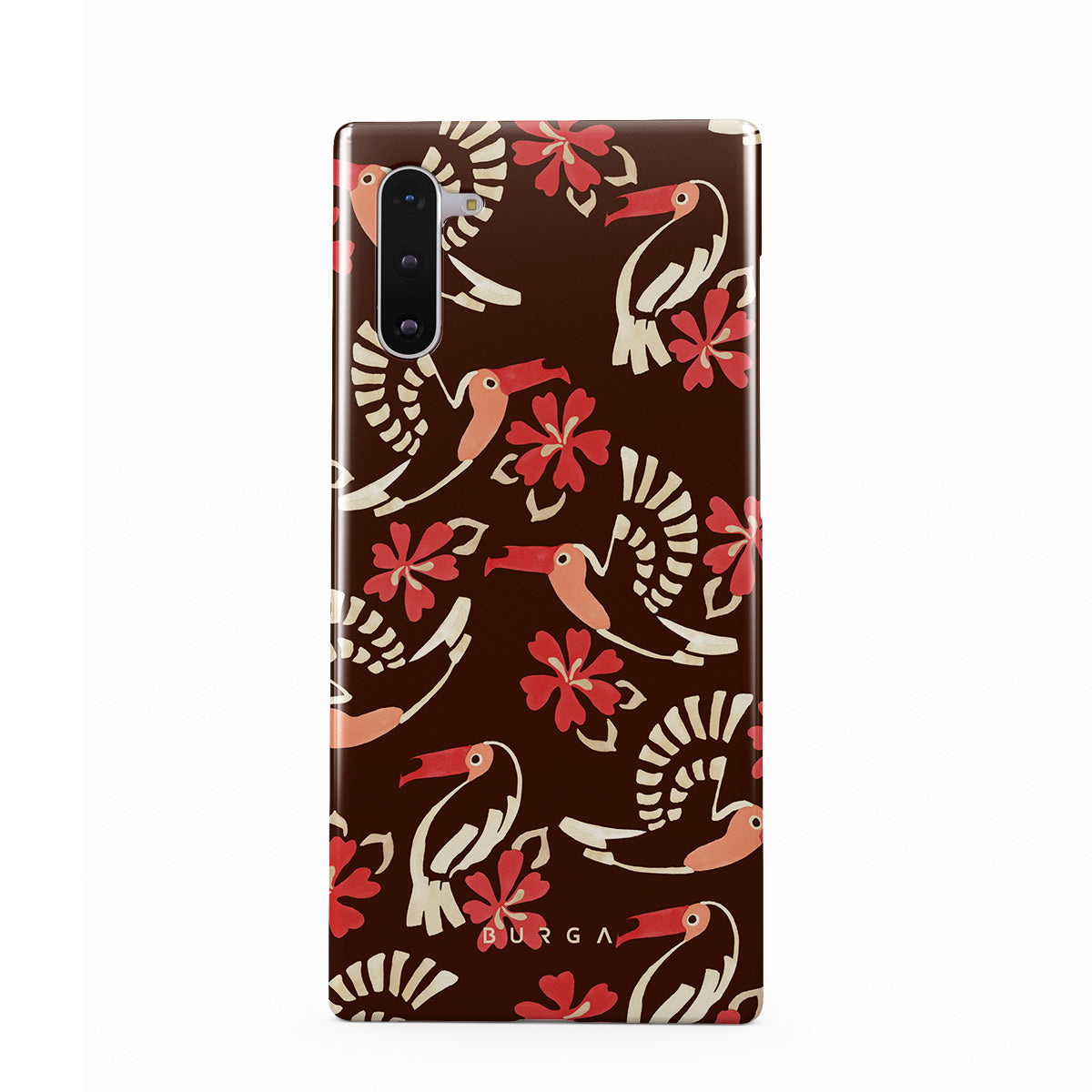 A jungle rave. Parrots, florals, bursts of red and cream—like someone threw a party in the rainforest and forgot to send you the invite. This Samsung Galaxy Note 10 phone case design is your RSVP.