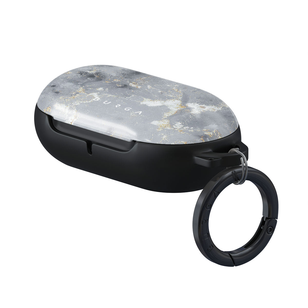The soft gray color scheme with the golden specks creates an Samsung Galaxy Buds Plus case cover that radiates sophistication. The unique design is inspired by nature and frost. Now you can keep the cool touch of winter in a design that will look good at any time of the year. Our case fits perfectly snug around Samsung Galaxy Buds Plus . “Like a glove!” one might say. And it won’t disrupt the wireless charging capabilities of the newer model. There’s even an LED light indicator to prove it (don’t worry, wired charging still works, too). When fitted, the BURGA case will protect the delicate Samsung Galaxy Buds Plus case beneath it from scratches, bumps, and drops while remaining scratch-free itself. Our signature design pattern prints are High Quality, and will never peel or fade away- thanks to our unique printing technology. And finally, a handy carabiner is there to make your life easier and more convenient: just snap it around your keys or belt loop and tackle the day head-on. Your music is right there by your side when you need it.