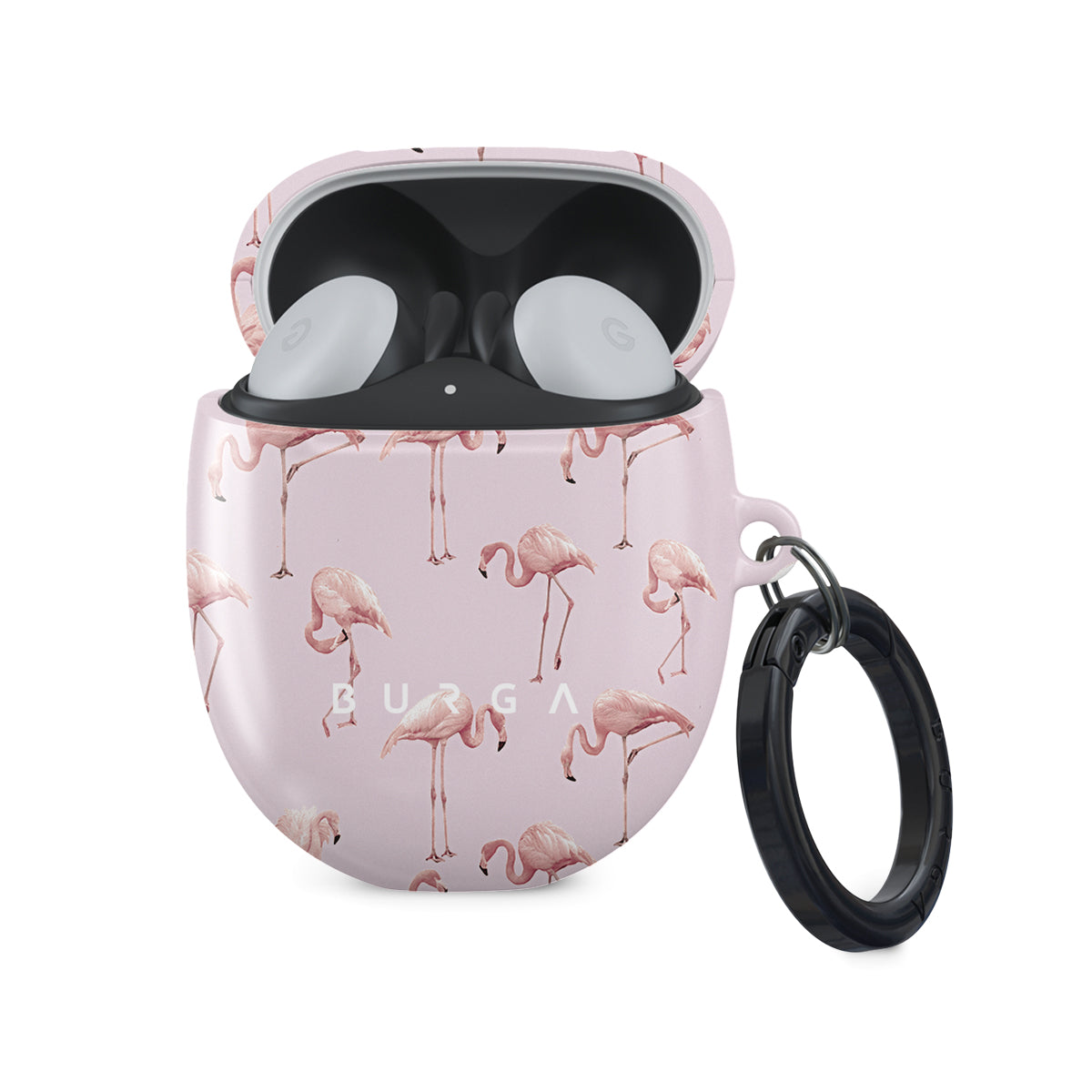 Nostalgic Pink Google Pixel Buds 2 case cover combines baby pink and playful flamingos pattern into a unique creation. The designer case will add a touch of playfulness to your style and will quickly turn a plain case into an accessory you must have. Our case fits perfectly snug around Google Pixel Buds 2 . “Like a glove!” one might say. And it won’t disrupt the wireless charging capabilities of the newer model. There’s even an LED light indicator to prove it (don’t worry, wired charging still works, too). When fitted, the BURGA case will protect the delicate Google Pixel Buds 2 case beneath it from scratches, bumps, and drops while remaining scratch-free itself. Our signature design pattern prints are High Quality, and will never peel or fade away- thanks to our unique printing technology. And finally, a handy carabiner is there to make your life easier and more convenient: just snap it around your keys or belt loop and tackle the day head-on. Your music is right there by your side when you need it.