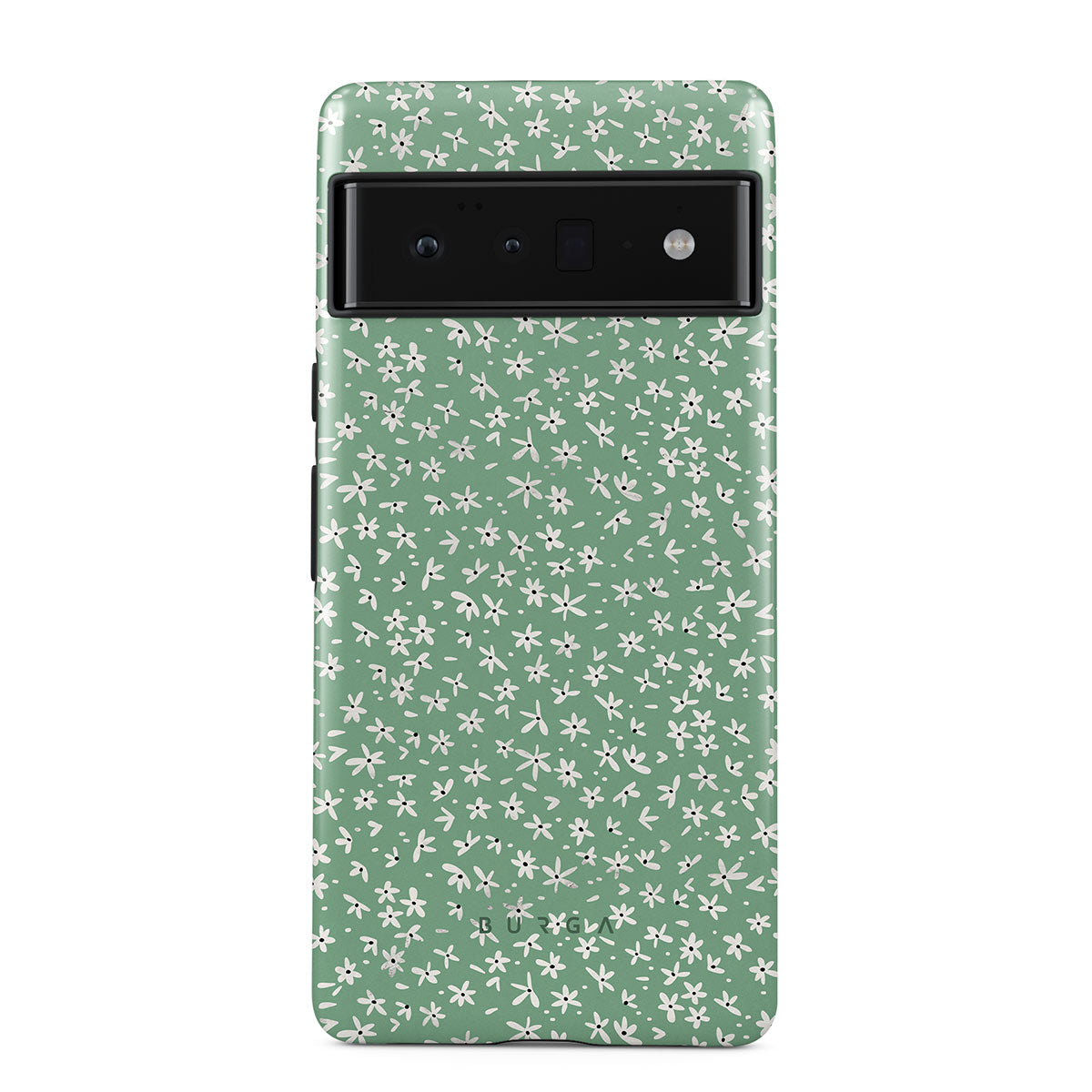 Our minimalistic floral Lush Meadows Google Pixel 6 Pro phone case is inspired by the green fields covered in petite and dainty flowers. The soft green phone case with a delicate floral pattern creates a perfect feminine design that will fit every occasion.