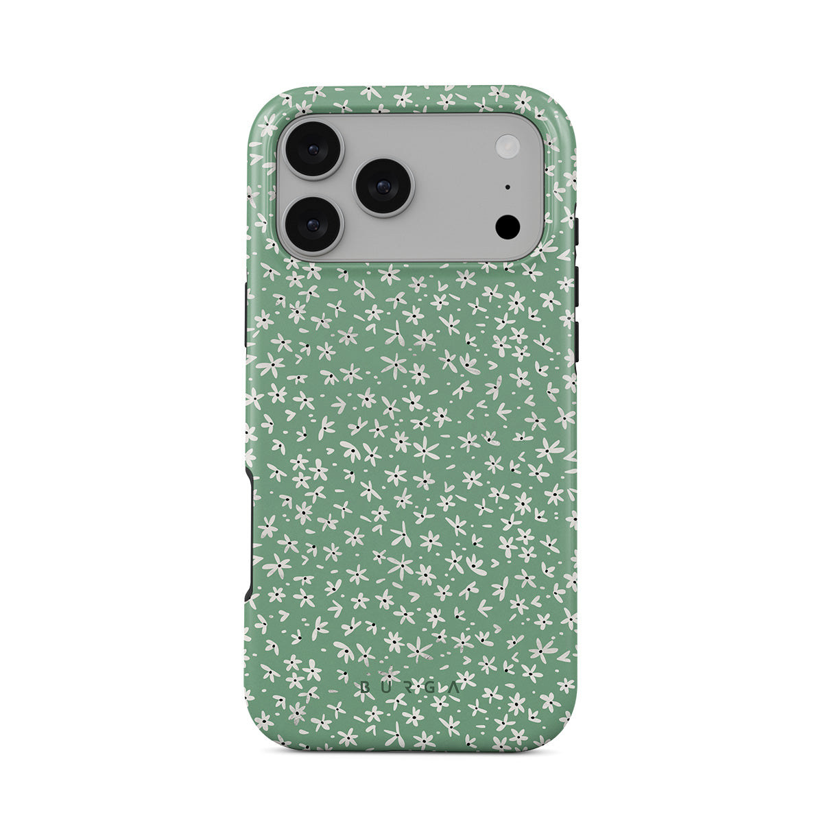 Our minimalistic floral Lush Meadows iPhone 17 Pro Max phone case is inspired by the green fields covered in petite and dainty flowers. The soft green phone case with a delicate floral pattern creates a perfect feminine design that will fit every occasion.