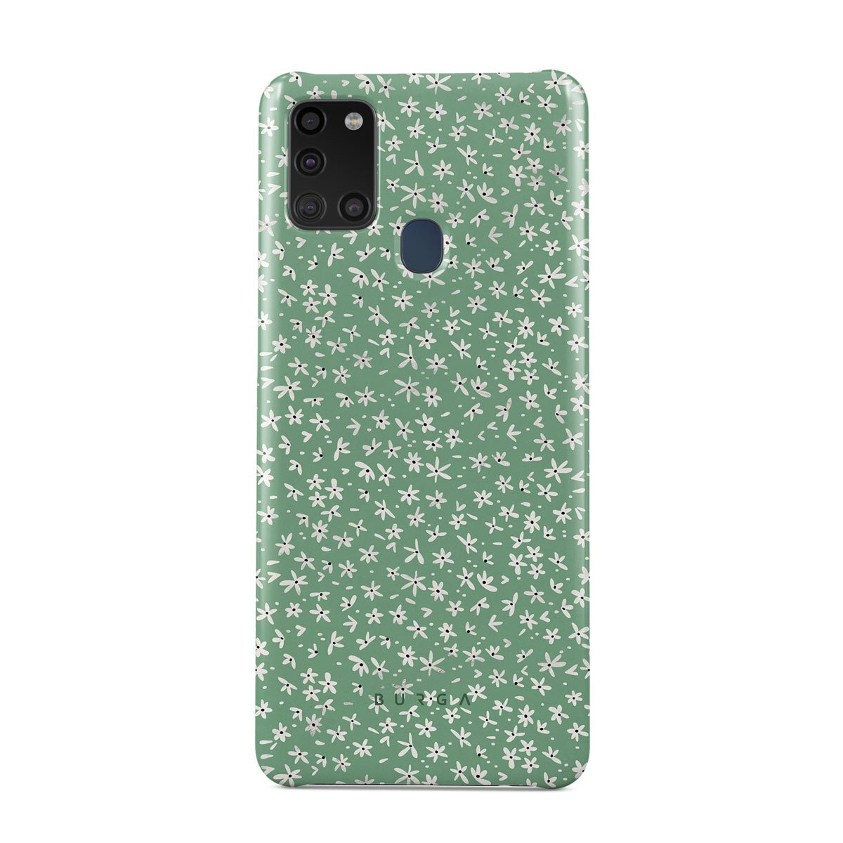 Our minimalistic floral Lush Meadows Samsung Galaxy A21s 4G phone case is inspired by the green fields covered in petite and dainty flowers. The soft green phone case with a delicate floral pattern creates a perfect feminine design that will fit every occasion.
