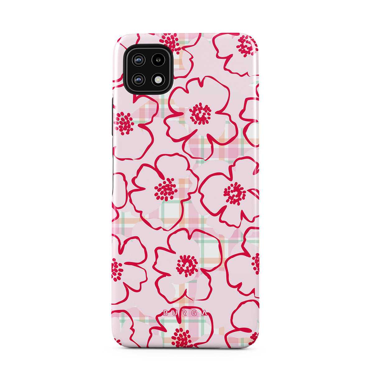 Pink flowers bloom from this Samsung Galaxy A22 5G phone case design—just like the ones you’d pick and put in your hair, simple and pretty, turning every walk through the garden into a fairy tale.