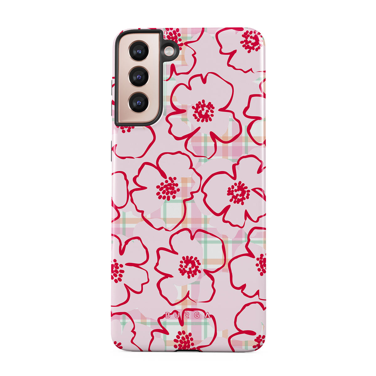 Pink flowers bloom from this Samsung Galaxy S21 Plus phone case design—just like the ones you’d pick and put in your hair, simple and pretty, turning every walk through the garden into a fairy tale.
