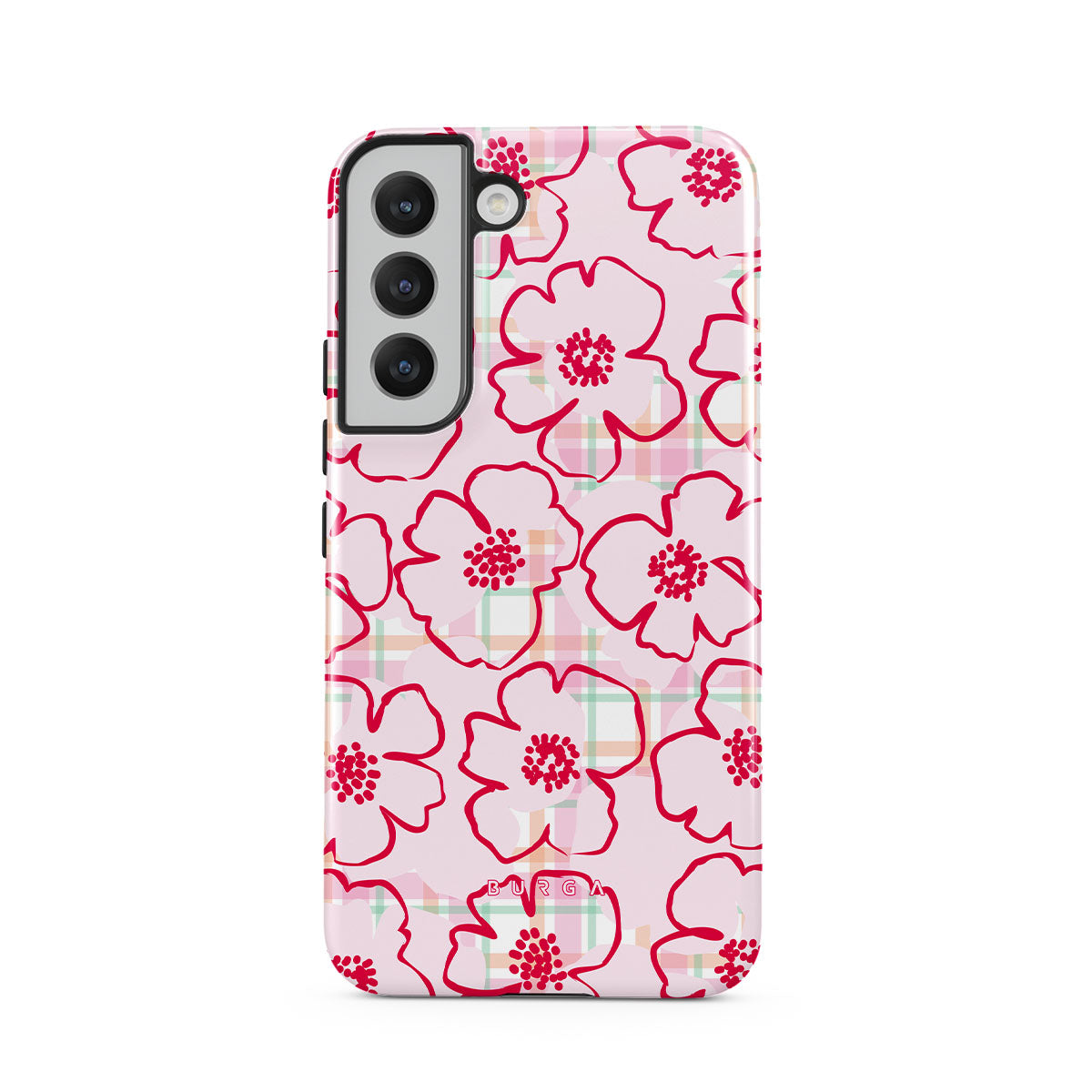 Pink flowers bloom from this Samsung Galaxy S22 phone case design—just like the ones you’d pick and put in your hair, simple and pretty, turning every walk through the garden into a fairy tale.