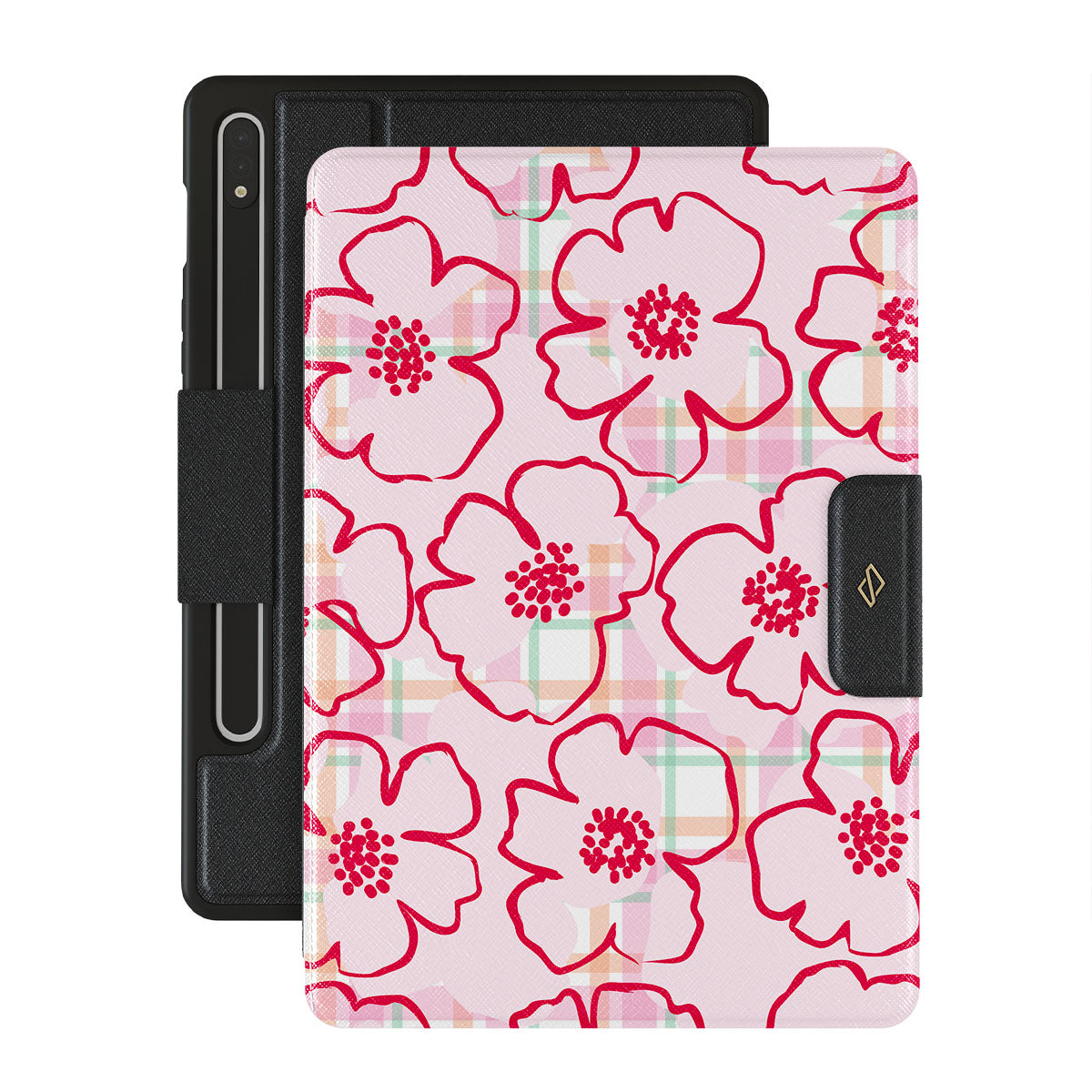 Pink flowers bloom from this Samsung Galaxy Tab S8+/S7+/S7 FE folio case design—just like the ones you’d pick and put in your hair, simple and pretty, turning every walk through the garden into a fairy tale.