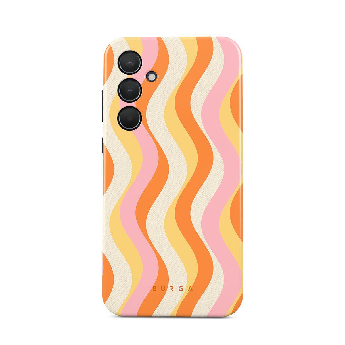 Love is the way to go, and our pastel Flower Power Samsung Galaxy A35 phone case is perfect for those who love loving! The pink and orange meet and create a calming and exciting combination! Just the right amount of past to your future!