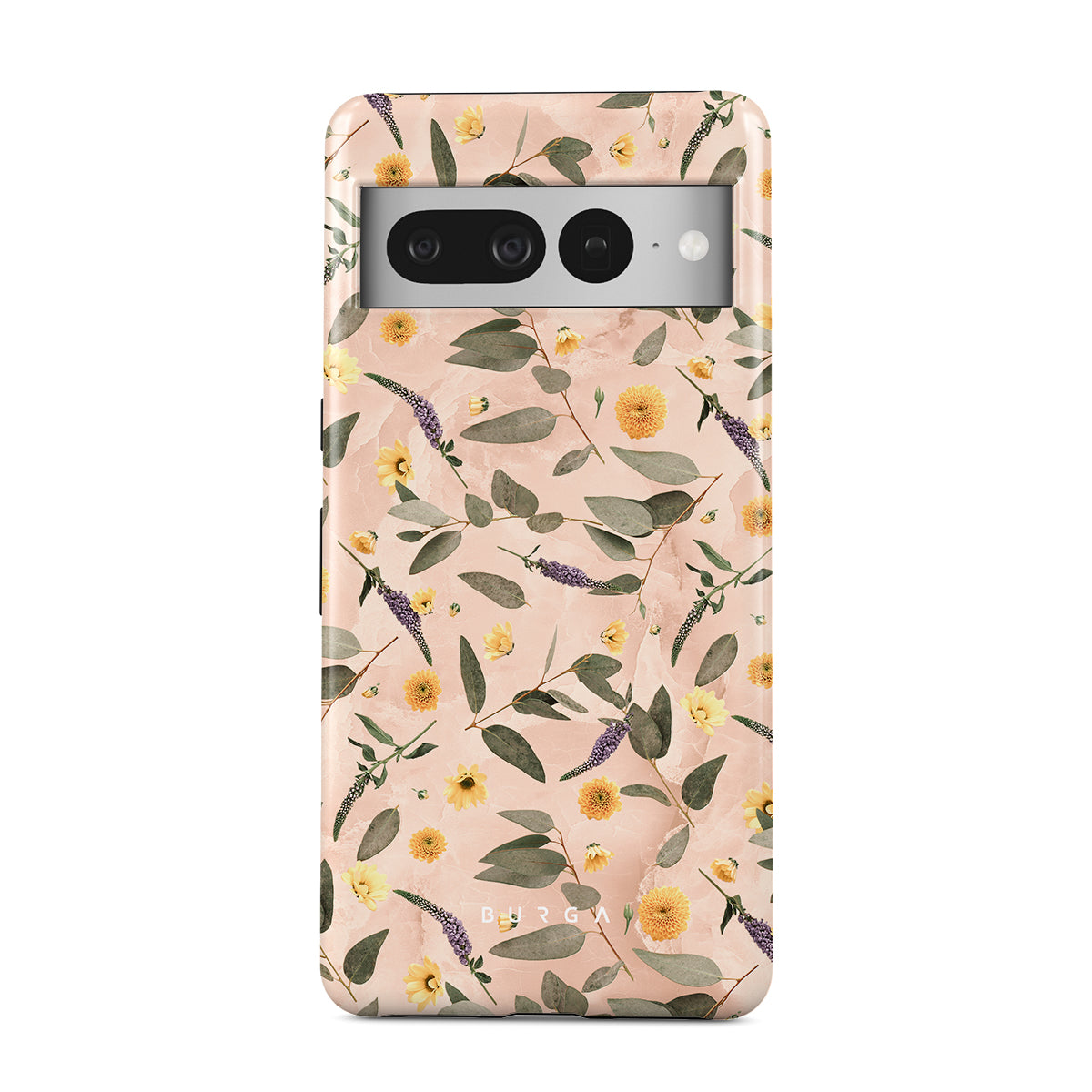 Sunday Brunch Google Pixel 7 Pro phone case features a timeless flower pattern. The soft-toned case with a pop of lavender and yellow colors will add a splash of energy to your style while protecting your phone from dangerous falls.