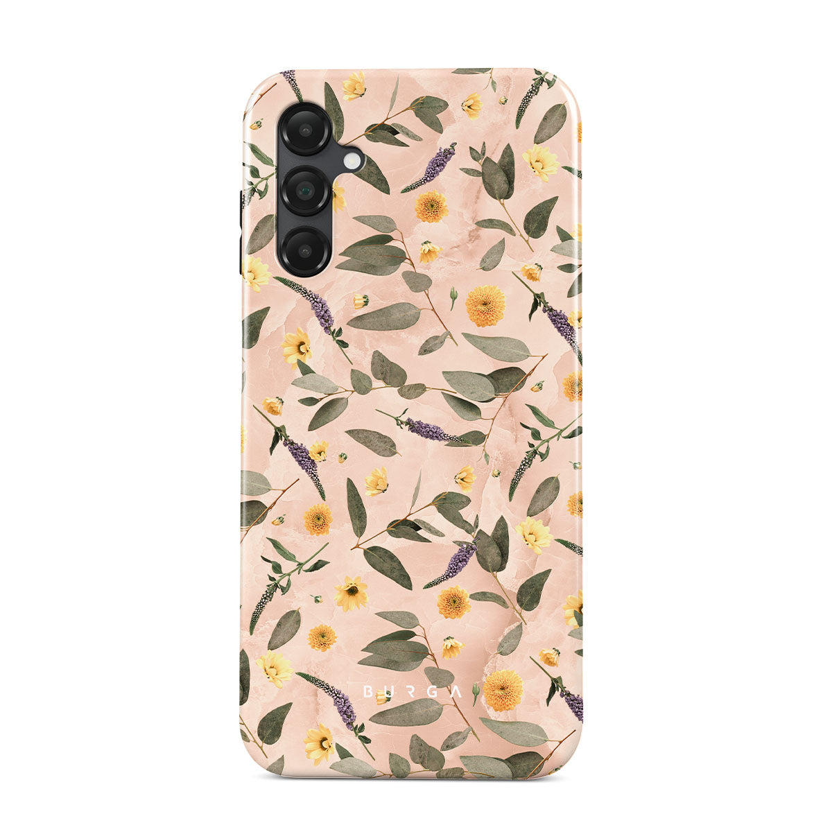 Sunday Brunch Samsung Galaxy A25 phone case features a timeless flower pattern. The soft-toned case with a pop of lavender and yellow colors will add a splash of energy to your style while protecting your phone from dangerous falls.