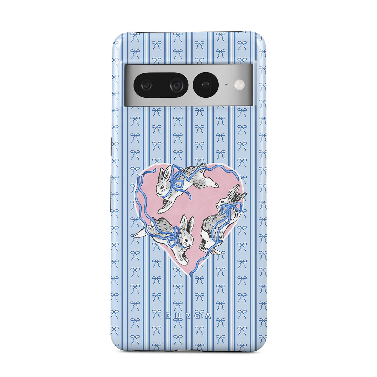 They run, you chase. Or maybe you run, and they chase you. The Follow Me Google Pixel 7 Pro phone case design is an eternal loop—white rabbits tangled in pink ribbons, leading you somewhere unknown. Or maybe, somewhere you’ve already been.
