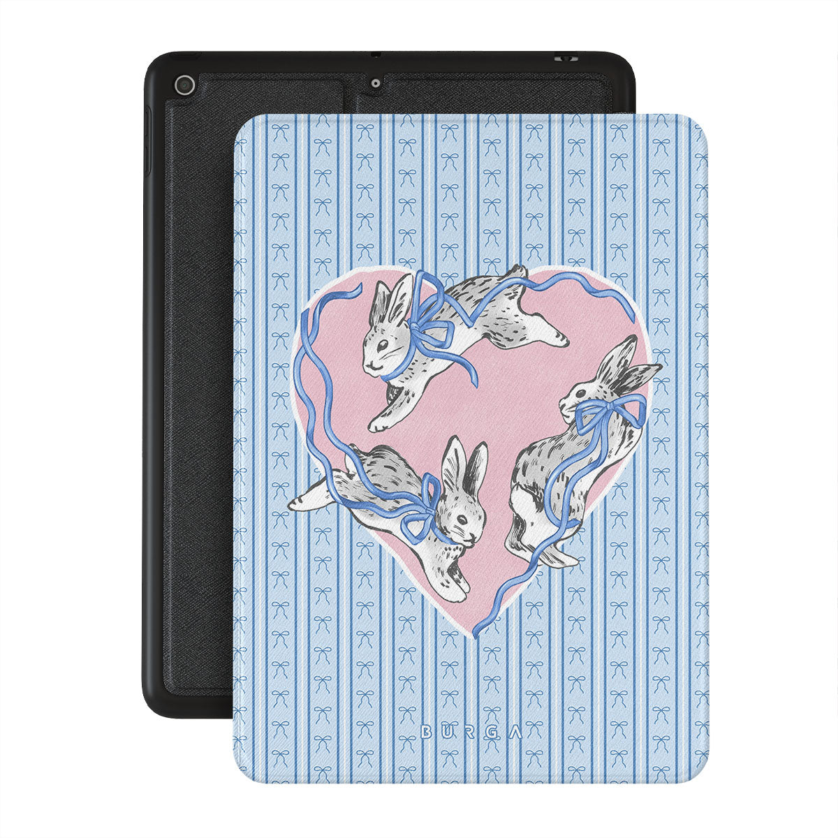 They run, you chase. Or maybe you run, and they chase you. The Follow Me folio case design is an eternal loop—white rabbits tangled in pink ribbons, leading you somewhere unknown. Or maybe, somewhere you’ve already been.