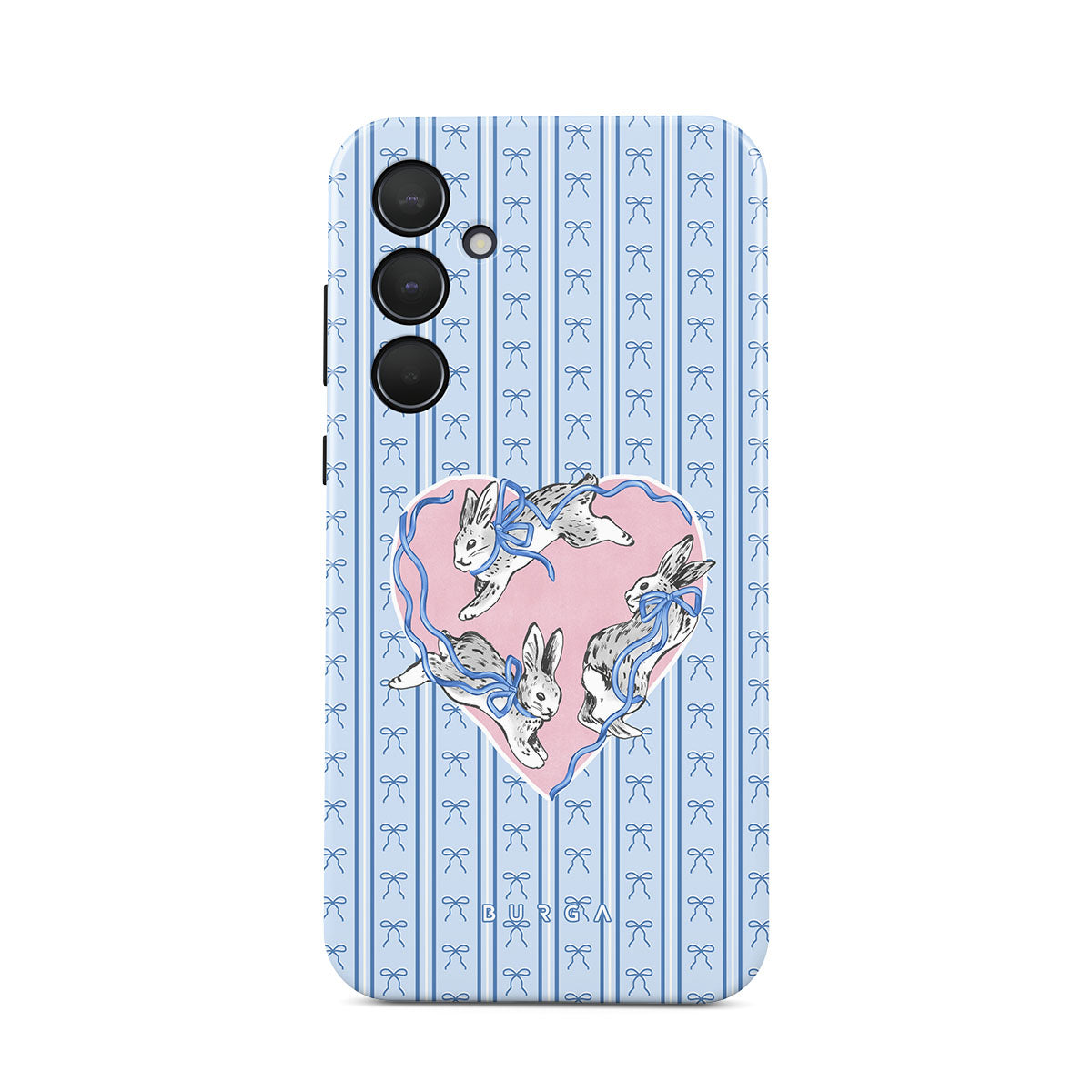 They run, you chase. Or maybe you run, and they chase you. The Follow Me Samsung Galaxy A35 phone case design is an eternal loop—white rabbits tangled in pink ribbons, leading you somewhere unknown. Or maybe, somewhere you’ve already been.
