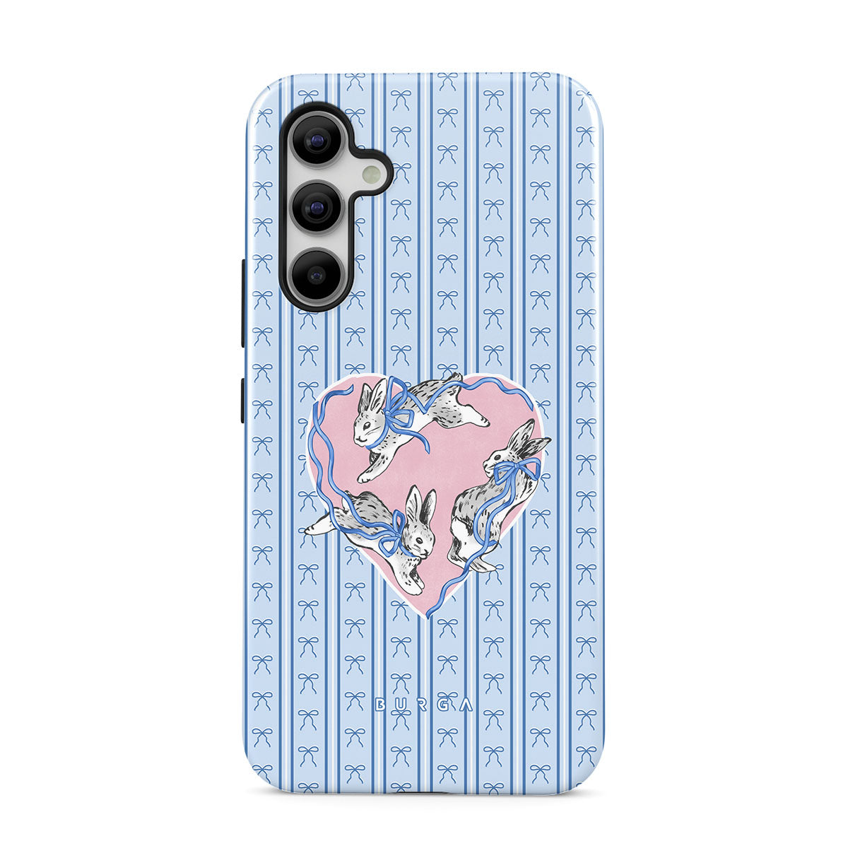 They run, you chase. Or maybe you run, and they chase you. The Follow Me Samsung Galaxy A54 phone case design is an eternal loop—white rabbits tangled in pink ribbons, leading you somewhere unknown. Or maybe, somewhere you’ve already been.