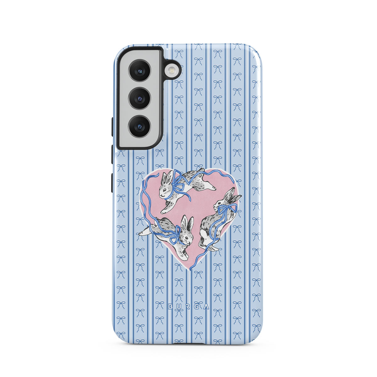 They run, you chase. Or maybe you run, and they chase you. The Follow Me Samsung Galaxy S22 phone case design is an eternal loop—white rabbits tangled in pink ribbons, leading you somewhere unknown. Or maybe, somewhere you’ve already been.