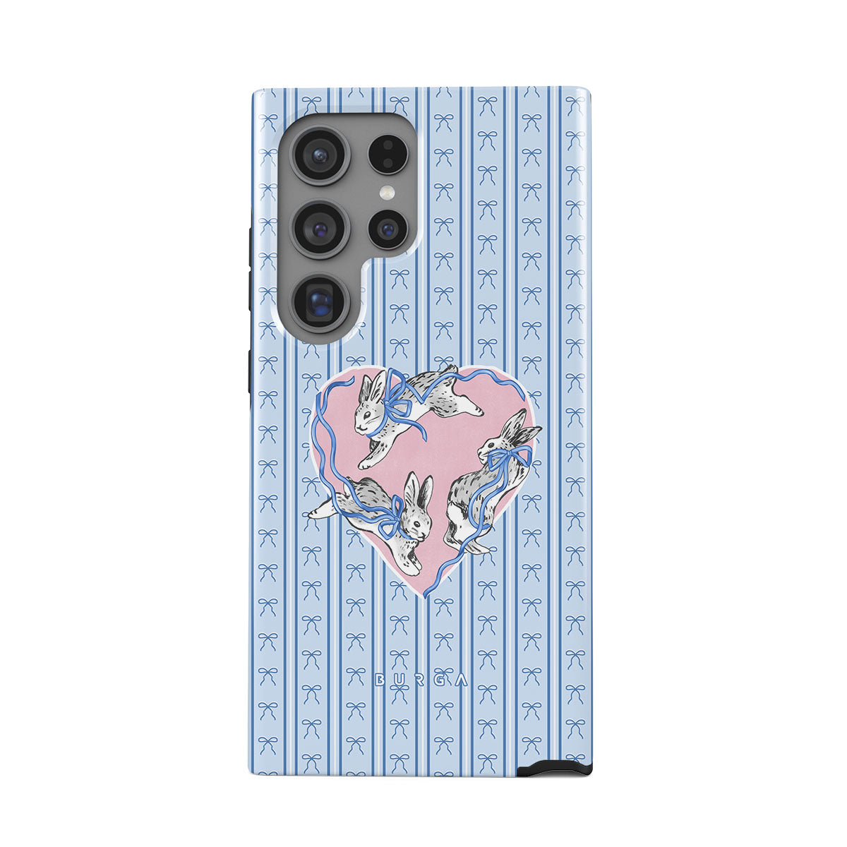 They run, you chase. Or maybe you run, and they chase you. The Follow Me Samsung Galaxy S24 Ultra phone case design is an eternal loop—white rabbits tangled in pink ribbons, leading you somewhere unknown. Or maybe, somewhere you’ve already been.