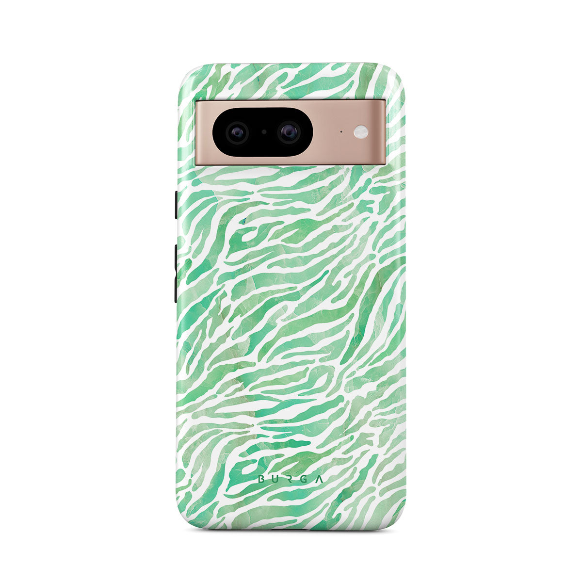 Our Free Spirit Google Pixel 8 phone case features an exotic zebra pattern in varying shades of green. Keep your spirits up, as there is no need to worry about your phone, as this trendy case is not only pretty but offers the heavy-duty protection that your cellphone requires.
