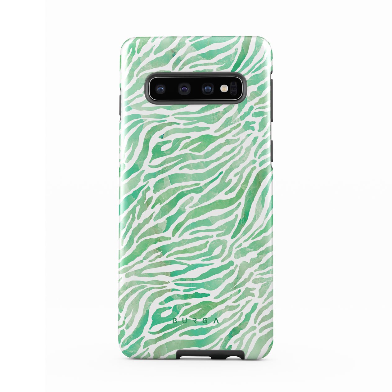 Our Free Spirit Samsung Galaxy S10 phone case features an exotic zebra pattern in varying shades of green. Keep your spirits up, as there is no need to worry about your phone, as this trendy case is not only pretty but offers the heavy-duty protection that your cellphone requires.