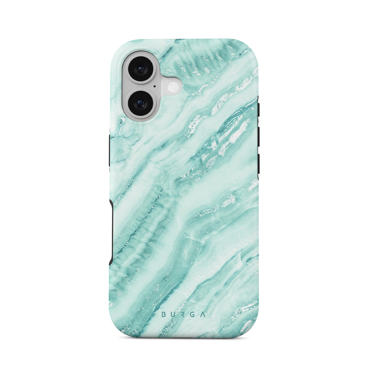 Add freshness to your style with our Fresh Breeze iPhone 17 phone case. The soft cyan color of the case is emphasized in a unique marble pattern. Do not let the softness of the color deceive you; the case still offers heavy-duty protection for your cellphone.