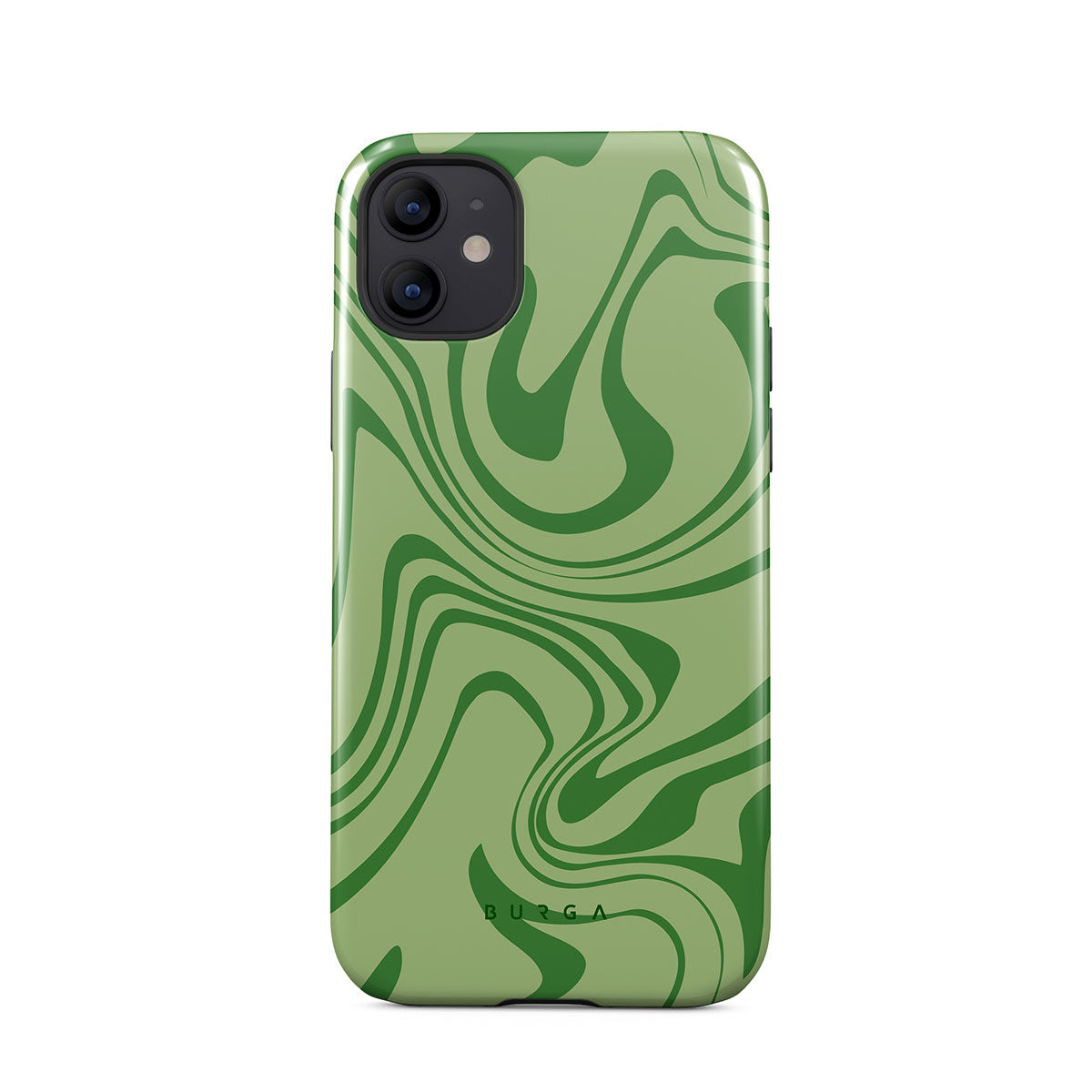 Our Funky Sensation iPhone 12 phone case design is a perfect abstract piece for those who love soft pastel colors but still want to stand out. A sharper take on the liquid swirl design in green shades will accompany your device perfectly.