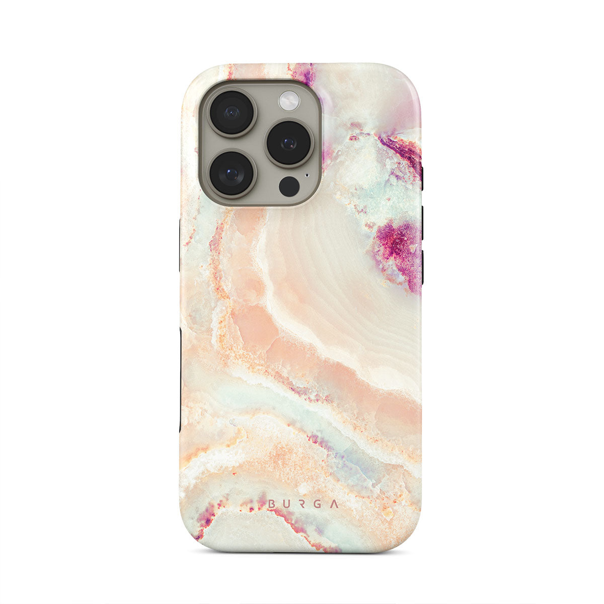 The soft color scheme of coral, pink, blue, and purple of our Berry Sorbet iPhone 16 Pro phone case radiates soft girly vibes. The feminine touch is felt throughout the design, making it an excellent choice to add to the springtime wardrobe and protect your phone from scratches and falls.